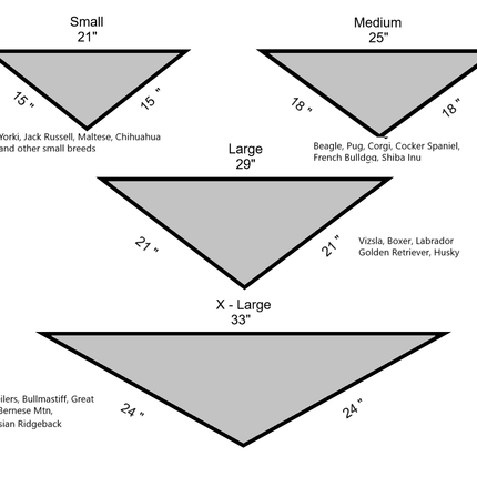 Large -      21" x 21" with 29" diagonal  (fits dogs 35-60 lbs)