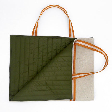 Perfect for dogs of any size; the inside is lined in military green nylon, padded and quilted, resistant to dirt and insulating against humidity, while the outside is in pure recycled cotton canvas.