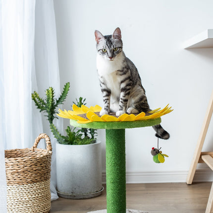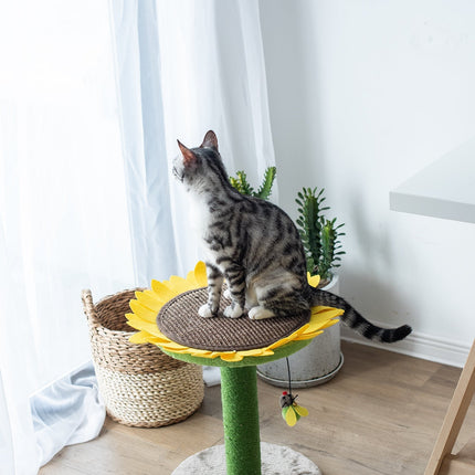 - Sunflower includes a scratching post that is made with 100% natural sisal rope and a sisal scratching pad in a unique sunflower design.