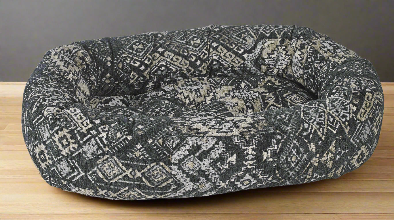 The oval ring creates the feeling of security pets love, while the removable tufted cushion can be used as a crate or travel mat. The circular tufting creates an elegant upholstered look while ensuring fibre does not clump or shift when washing.