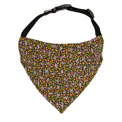 Delicate flowers are so pretty on this bandana. Lightweight - just slides easily over collar so dogs don't even notice they're wearing it. Paisley Paw Design handmade in the USA.