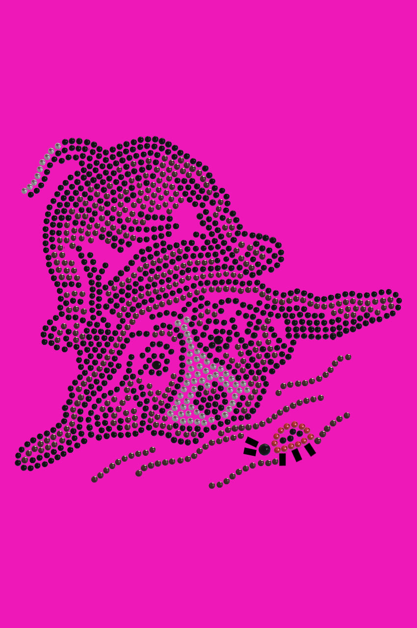 • 5" X 4.5" design with black, brown, silver, & red rhinestuds.