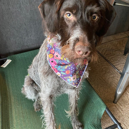 Our Dog Bandana is handmade in the USA by Paisely Paw Designs.   Bandana has a flexible, comfortable neck area and is cut into a triangle shape for less bulk.