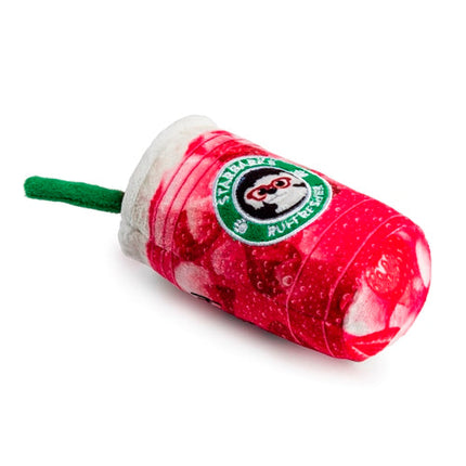 Calling all dog owners who love Starbarks! Meet the Starbarks Ruffresher - a fun, berry-colored plush dog toy that's a playful parody of the popular drive-thru drink. Your furry friend will love playing with this soft and cuddly toy, complete with a squeaker inside for added entertainment. With its unique design and nod to your favorite coffee chain, the Starbarks Ruffresher is a must-have for any stylish and coffee-loving pup!