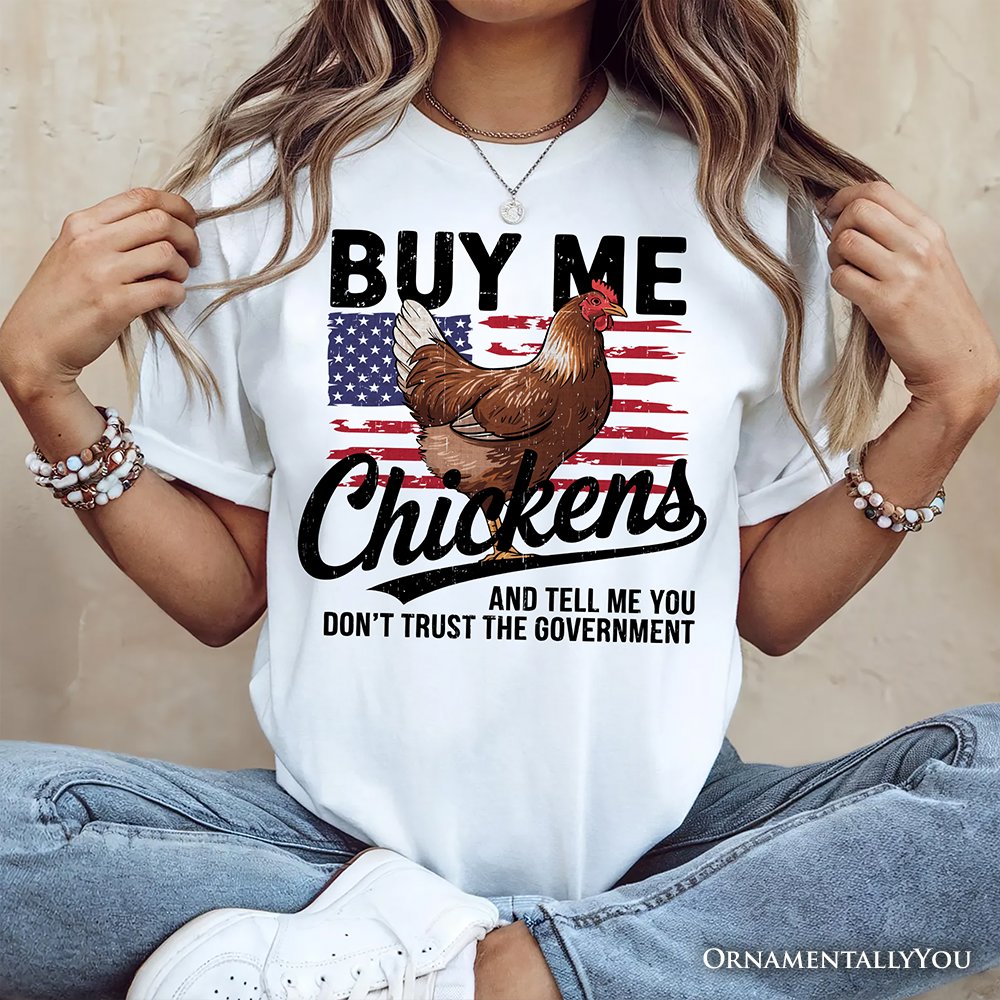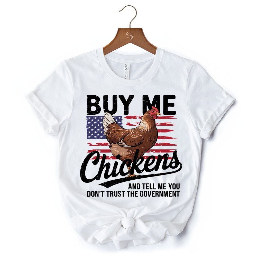Buy Me Chickens T-Shirt, Patriotic American Retro Flag White Tee for Funny Country Style Lovers