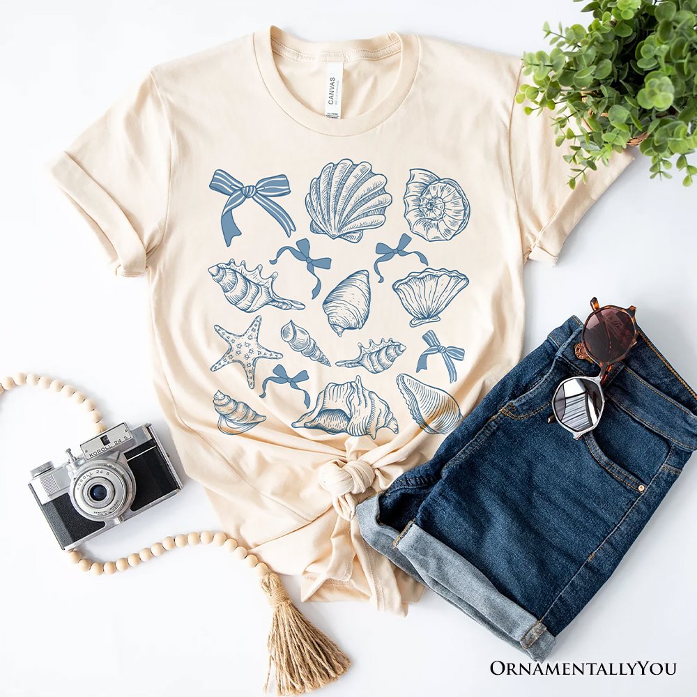 Coquette Seashell Summer Vibe T-Shirt, Natural and White Retro Beach Tee Gift for Ocean Lover