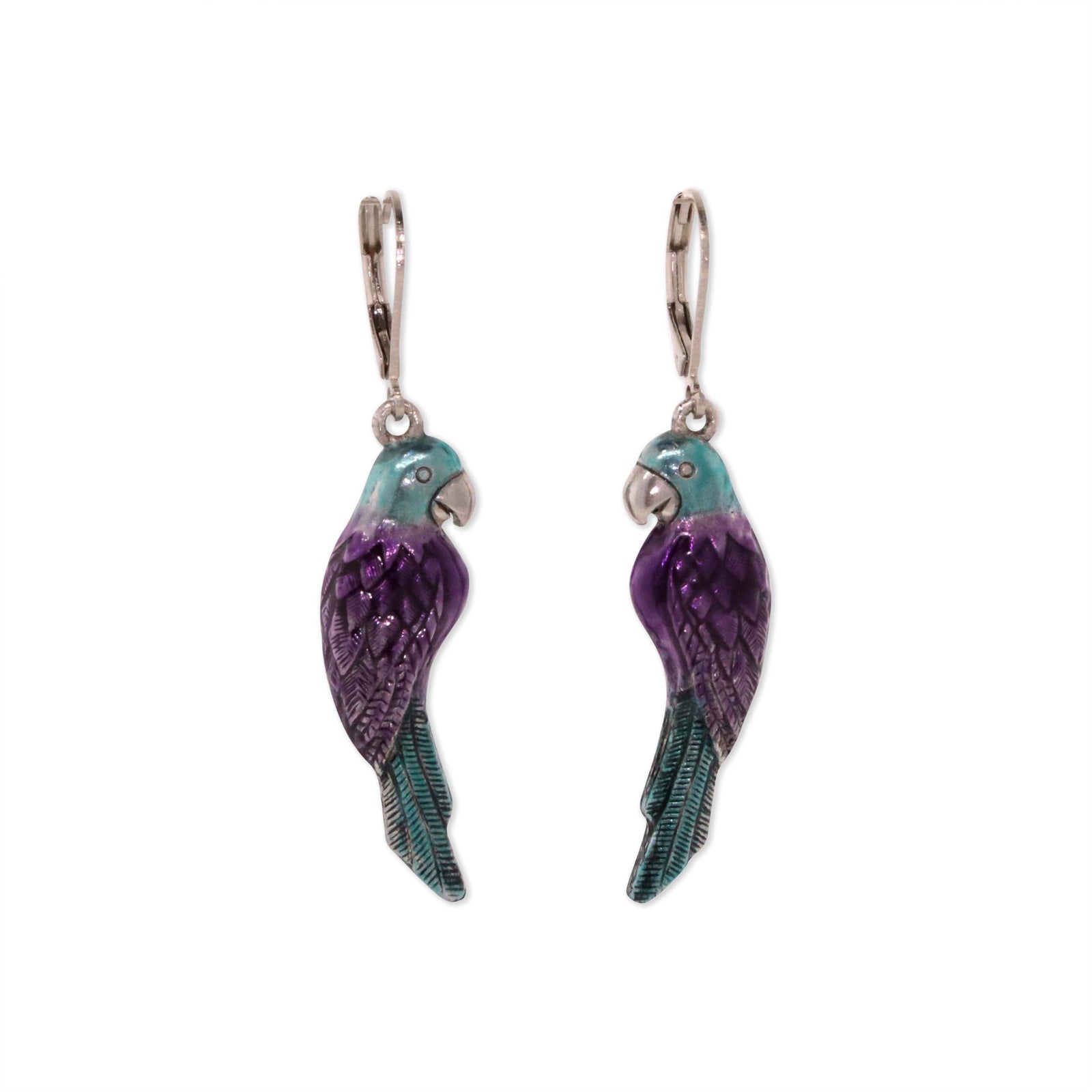 Bring a touch of the Caribbean with you anywhere you go with these beautifully designed & intricately detailed parrot earrings! These psittacine earrings are made of pewter and each hand enameled in two colors in Los Angeles, Ca!