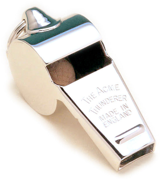 Made in England since 1884, Acme's Thunderer Whistles offer total reliability, control, and power. The latest high tech research & development has created the advanced modern Thunderer. Made of nickel plated brass, the Thunderer is used by the NFL, Olympics, and other world-class leagues. Relied upon for over 130 years.