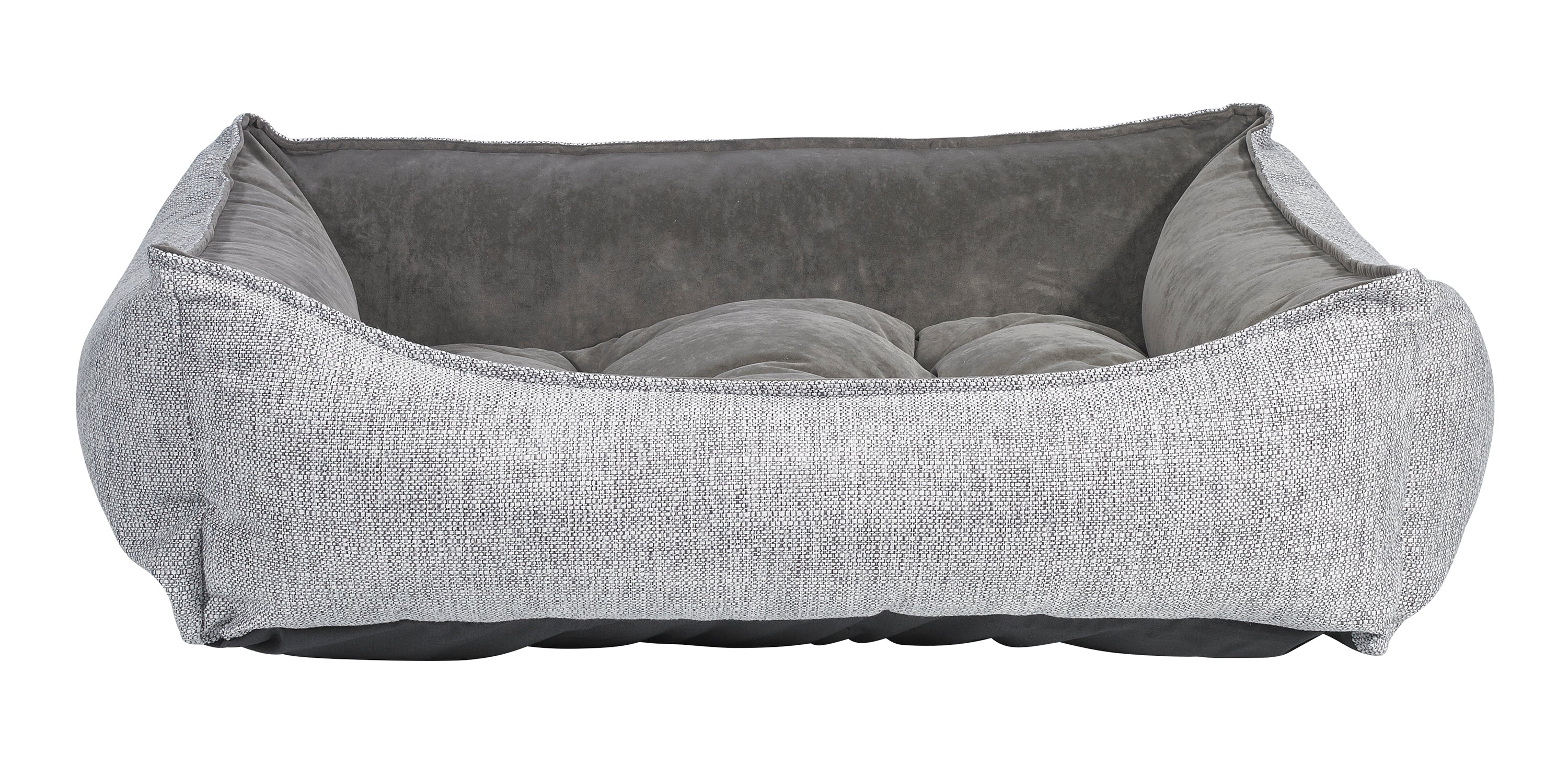 Easy Entry, Scooped Design! Stylish two-tone fabric combination and European style "pinched edge" trim detail. Removable tufted center cushion. Generous sizing maximizes sleeping area. Great design for older or arthritic dogs.