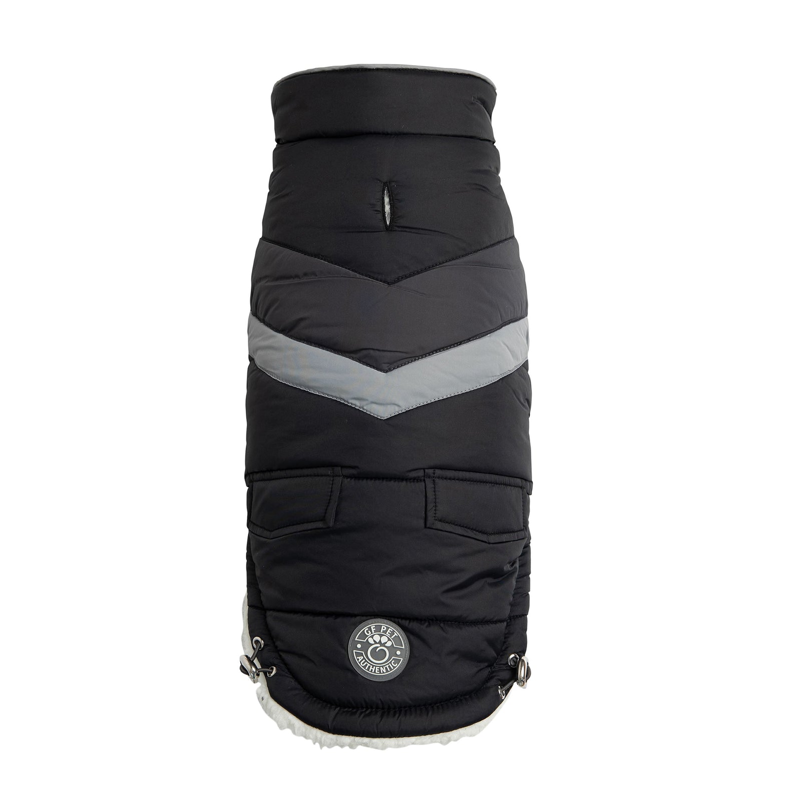 The GF Pet® Alpine Puffer is a great choice for active dogs who are looking for carefree fashion and warmth. It's a modern take on a retro chevron design, with faux pockets and next-generation styling. With GF Pet signature contrast piping and snuggly-warm, popcorn Sherpa lining, the Alpine Puffer keeps it real. Water repellent and super-adjustable, with patented Elasto-Fit technology, this coat is designed to keep dogs looking cool while staying warm.