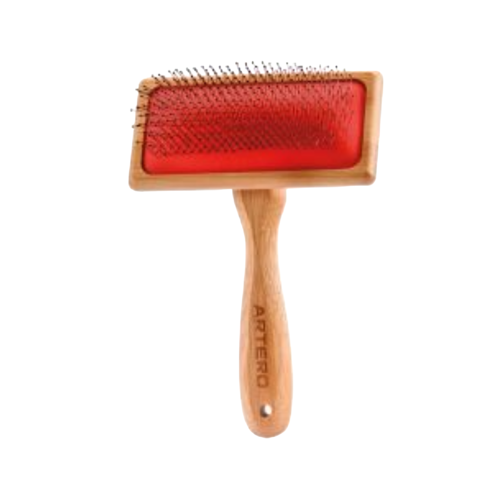 Nature Collection Long Protected Pin Slicker Medium by Artero is designed for everyday pet care at home. Thoughtfully made for quality, comfort, and reliable performance. Artero Nature Collection Long Protected Pin Slicker Medium provides excellent grooming results with minimal effort. Has 0.79" thin pins with plastic tips that dont harm the dog while grooming Suitable for grooming large and medium-sized breeds The fine pins of this Artero dog grooming brush help to open and separate the coat and untangle mats The air cushion system prevents irritation on the skin It comes in an ergonomic bamboo handle for better grip Click HERE to see all Brushes Click HERE to see all Artero products Find more at www.HTAnimalSupply.com.