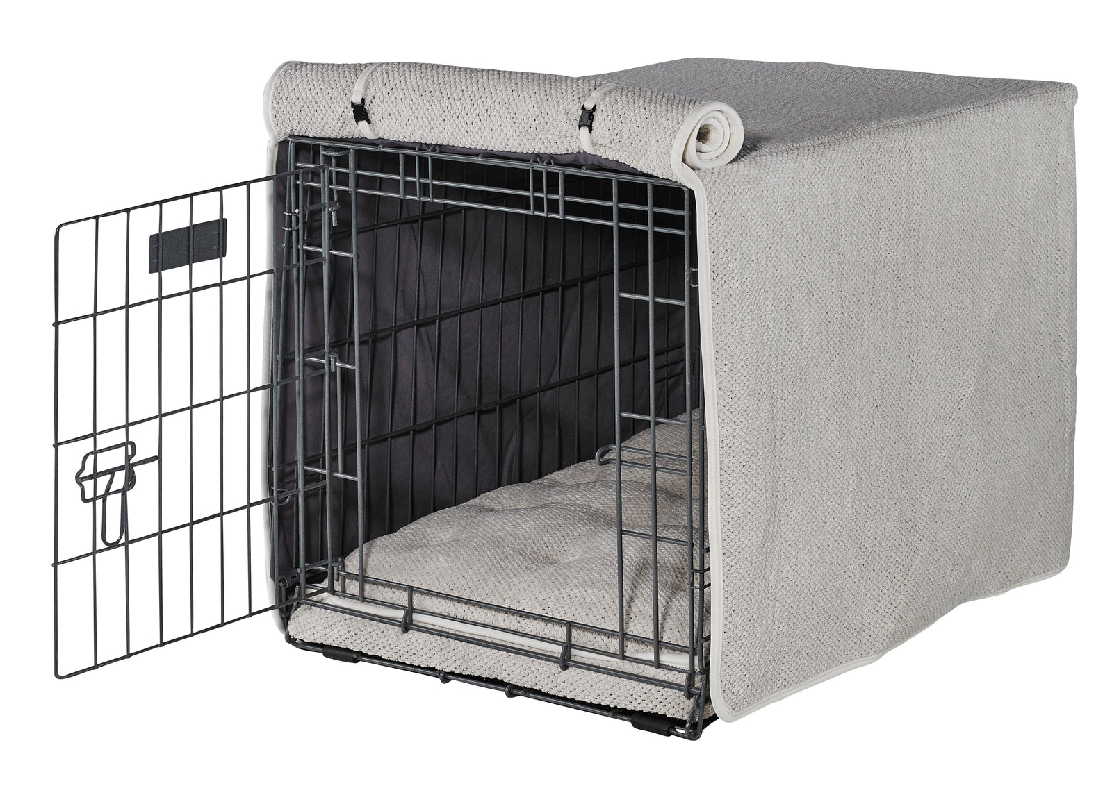 Dress up Your Wire Crate in Style! This Luxury Cover not only gives your dog privacy and security, but adds a touch of class to ordinary looking wire crates. The finishing touch to our overwhelmingly popular Luxury Crate Mattress. The most practical and stylish crate set on the market. Roll up front panel. Machine washable and dryable. Please note: Luxury Crate Mattress sold separately.