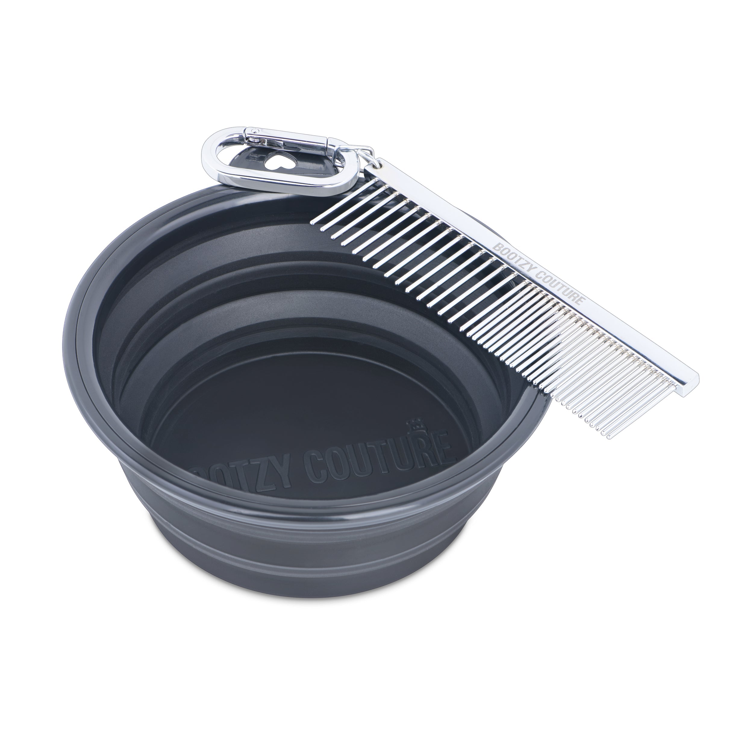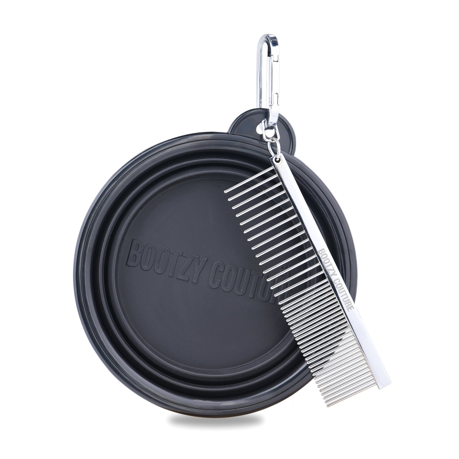 -Collapsible bowl made with high quality flexible material with Bootzy Couture detail, food & water safe.