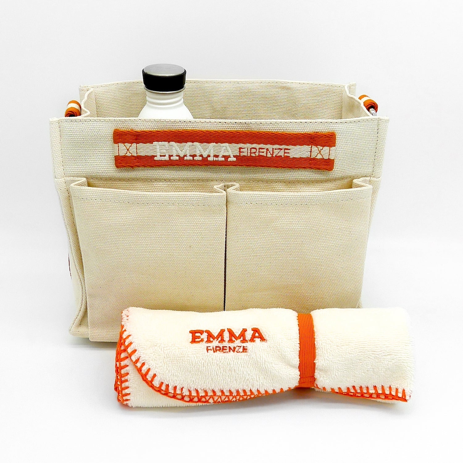 Bamboo Mat is edged in blanket stitch with a contrasting cotton yarn and embellished with the embroidery of our brand in the same color while a coordinated elastic ribbon allows you, once folded and rolled, to store this accessory in our WALKING BAG, optimizing the space.This accessory is designed to coordinate perfectly with the bag, both for its function and for size and colors. It fits neatly inside, along with everything you need on walks with your puppy.