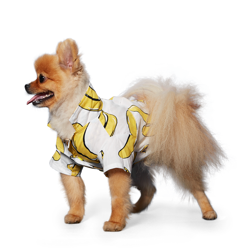 Presenting our Snap Button-Up Collar Shirt, adorned with a bold and delightful big banana graphic. This shirt is not only stylish but also practical, featuring a leash hole for convenient outdoor walks with your furry friend.