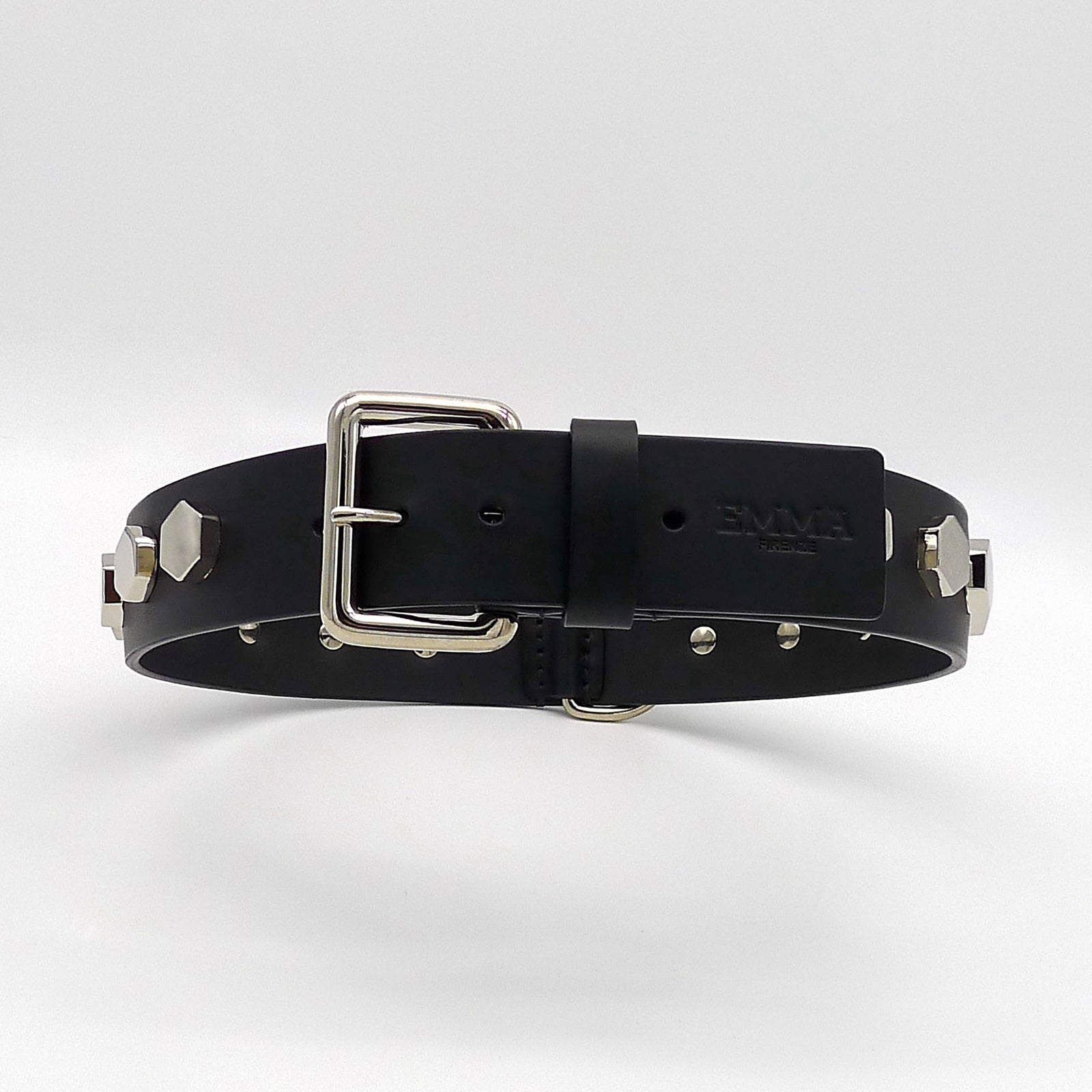 Dog collar made to measure in absolute black leather, which EMMA Firenze dedicates to our larger four-legged friends who need a reliable product, while maintaining the unmistakable charm of the brand.