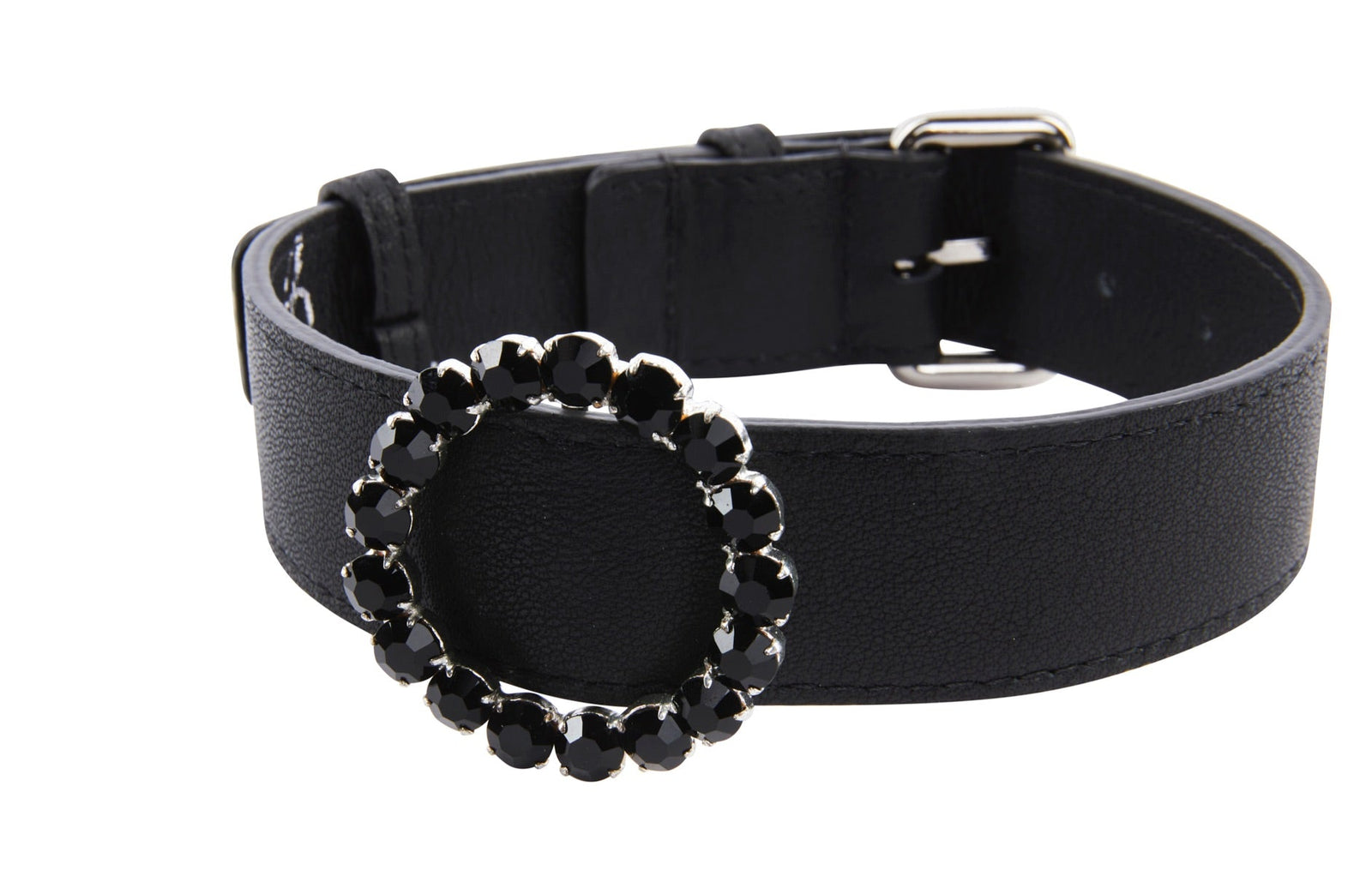 Introducing the Black Italian Leather Collar With Authentic Crystal Ring/Reversible Classic Collar – a statement of sophisticated fashion and luxury. Crafted with premium materials and designed to turn heads, this piece adds a touch of glamour to any wardrobe. Ideal for those who demand both style and exclusivity in every detail.