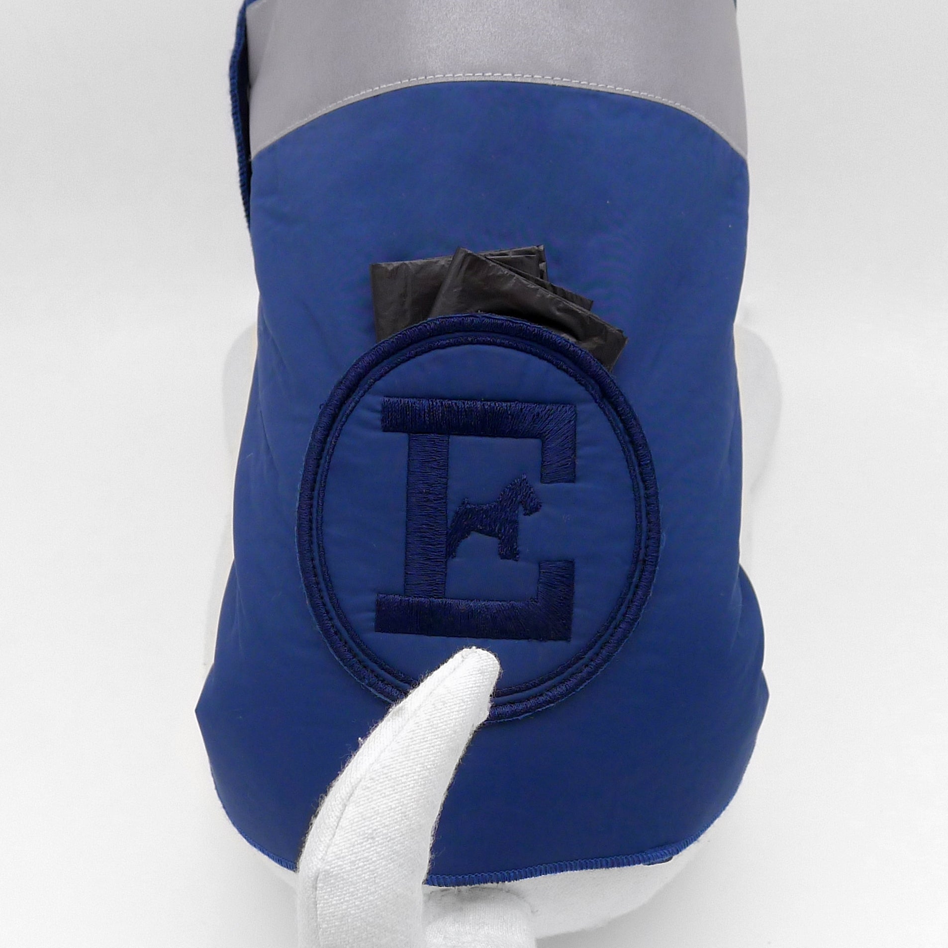 A round patch, which reproduces our unmistakable embroidered logo, applied on the back, allows you to store the waste bags: an original system that combines practicality and aesthetics, in the tradition of the EMMA Firenze style.