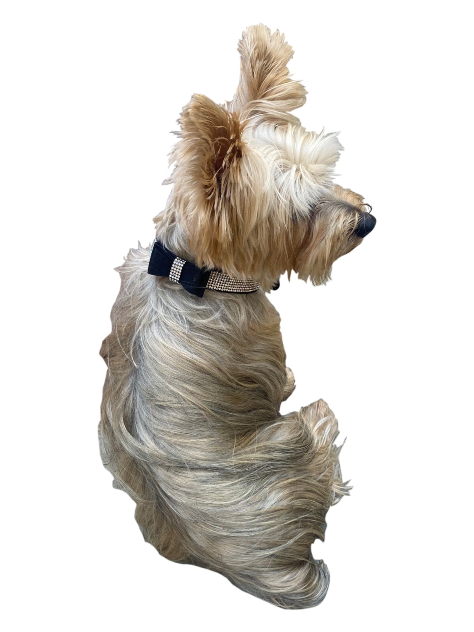 Adorn your pups wardrobe with this dazzling rhinestone-studded pleather bow-tie collar--perfect for daily walks and special occasions alike!