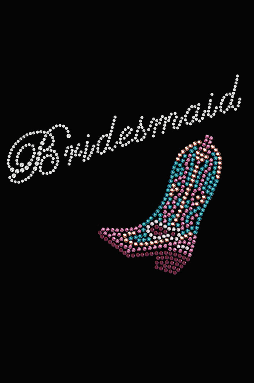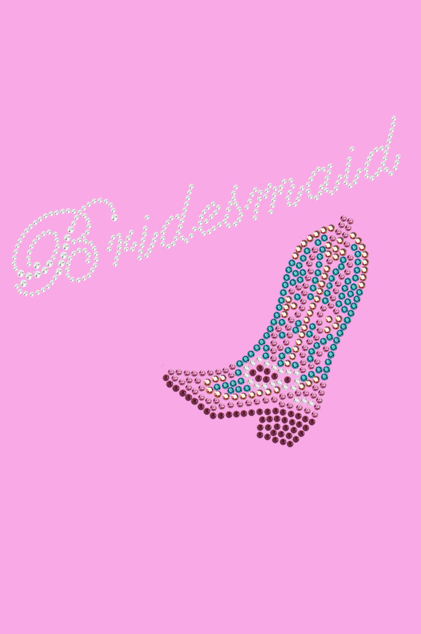 • Bridesmaid with Pink/Turquoise Cowboy Bootadult tee.