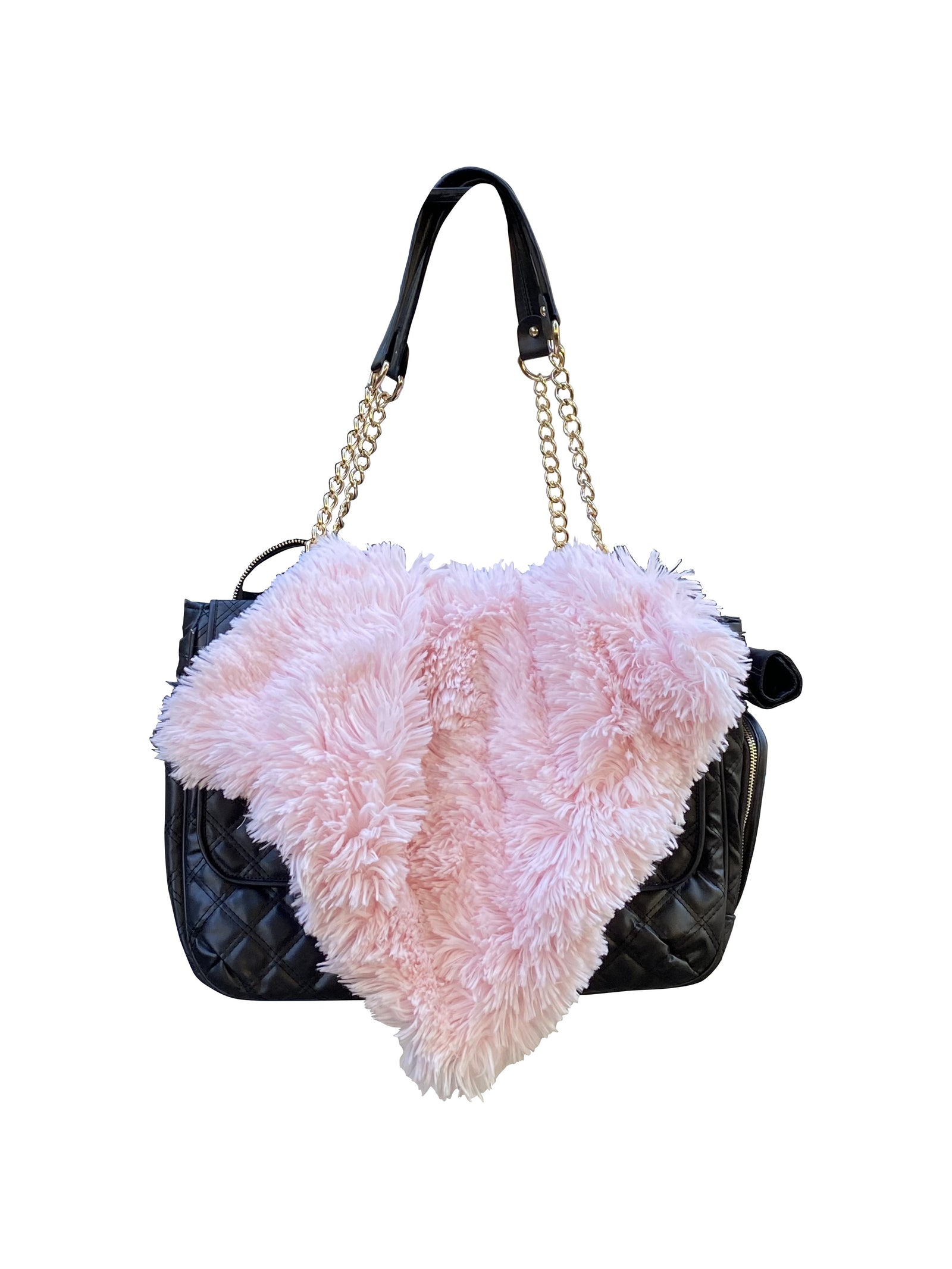 Travel in style with the Dog Squads Powder Puff in Pale Pink! Crafted in luxuriously soft faux fur, this eye-catching carrier blanket offers comforting warmth and snuggly comfort on the go.