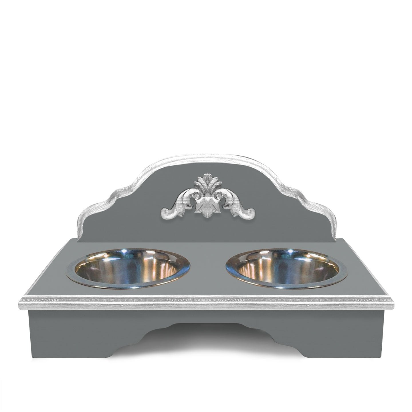 Luxurious and practical, this gourmet bar is an absolutely joy to have near my bed. Designed to match my bed both in color and design, and stand by me whenever I need a sip of water or at breakfast or dinner time, this exquisite feeding station with a Renaissance ornament and an elegant frame is featured with two separate bowls.