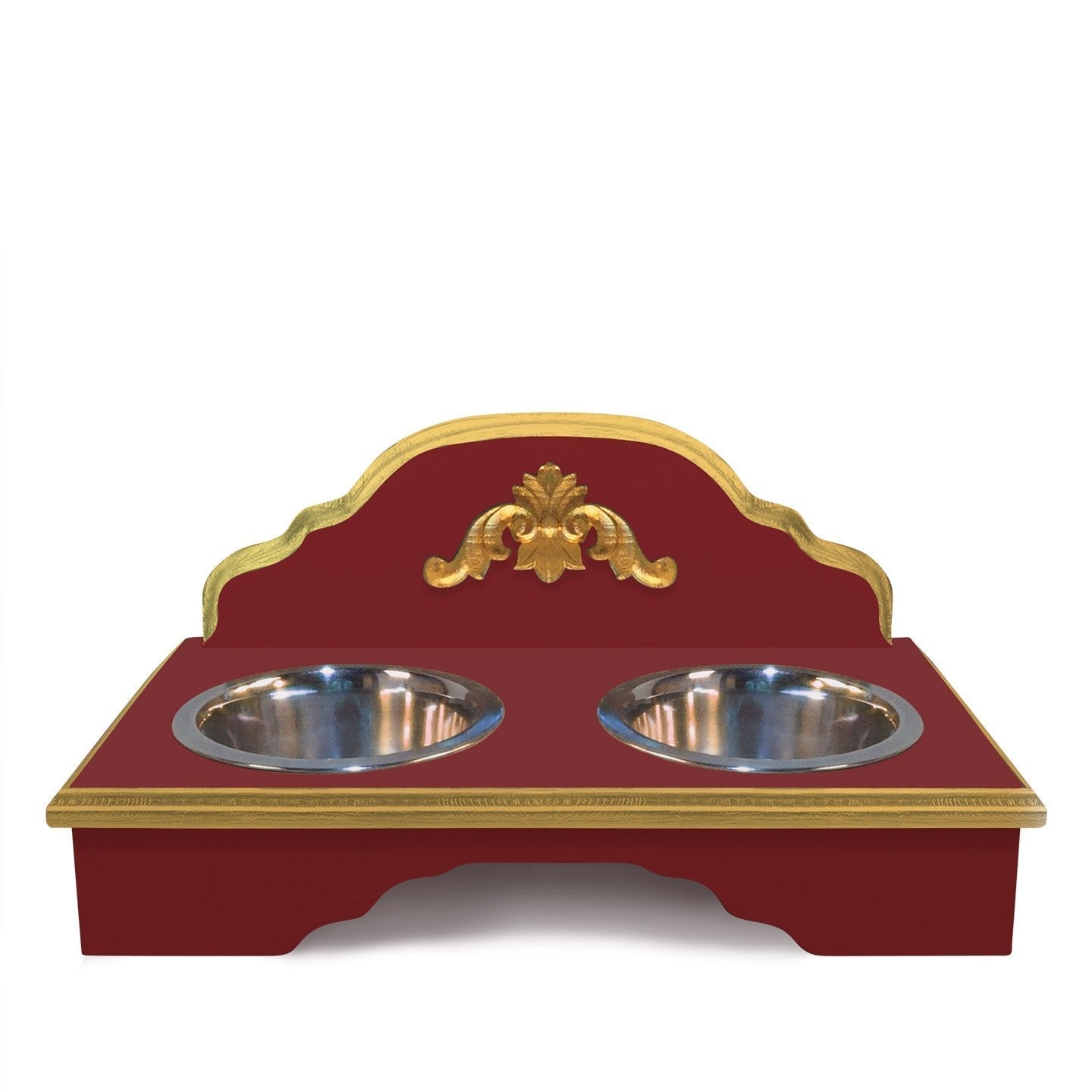 Luxurious and practical, this gourmet bar is an absolutely joy to have near my bed. Designed to match my bed both in color and design, and stand by me whenever I need a sip of water or at breakfast or dinner time, this exquisite feeding station with a Renaissance ornament and an elegant frame is featured with two separate bowls.