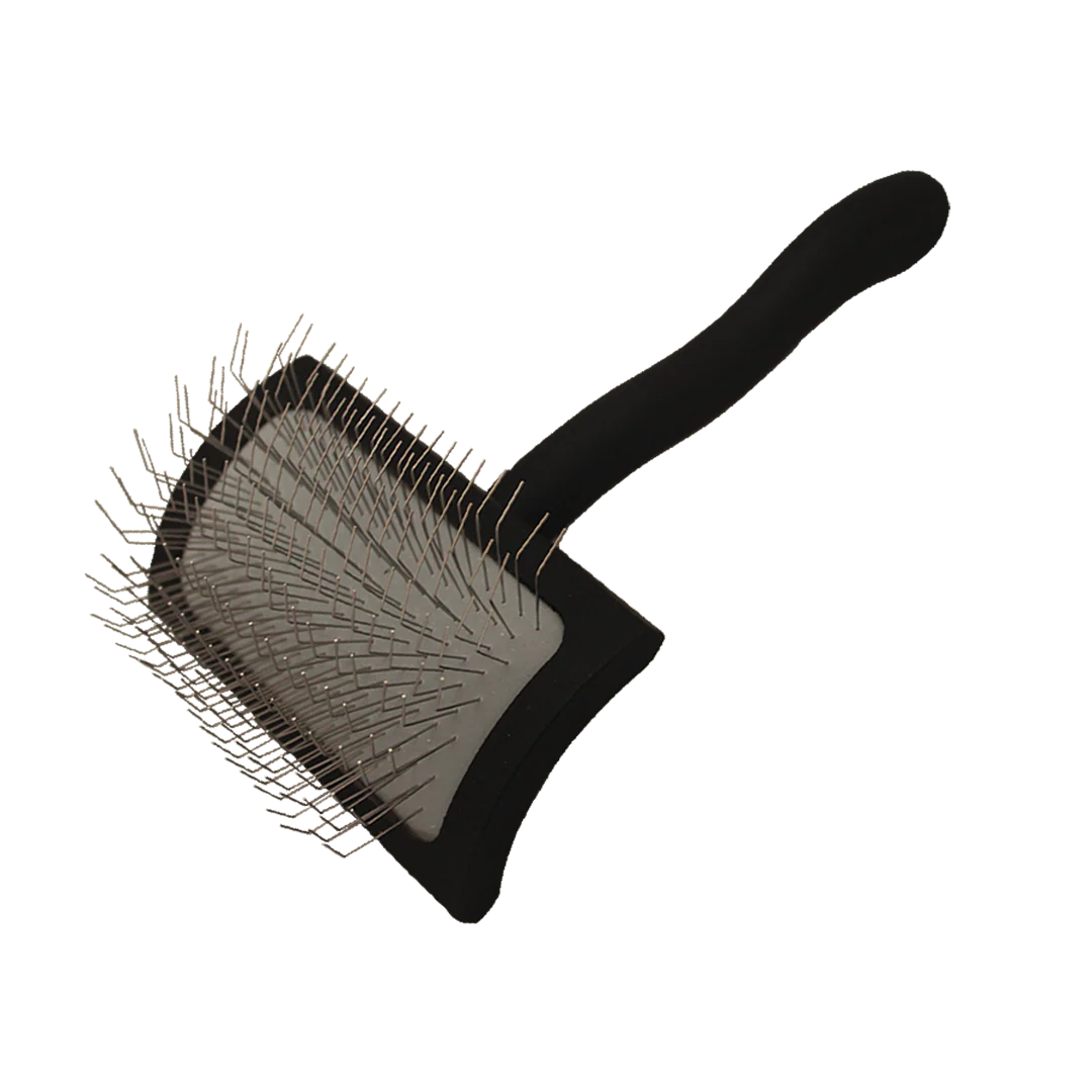 Big K Medium Black Slicker by Chris Christensen is designed for everyday pet care at home. Thoughtfully made for quality, comfort, and reliable performance. Chris Christensen Big K Medium Black Slicker brush is ideal for long and hard-to-manage coats and makes grooming faster. Perfect for removing tangles and mats with great ease The brush has long, sparse pins that are great for removing the hard-to-reach undercoat Originally designed to fit the specific needs of the Black Russian Terrier Extreme curved back allows more control and movement It strengthens the hair and makes the velvety smooth coat Big K Medium black slicker has a flexible cushion pad which helps the soft and scratch-free pins easily brush the coats The brush is perfect for styling, detangling, fluffing, finishing and makes grooming smooth and easy It has a long ergonomic handle that reduces wrist fatigue Click here to buy a plastic cover designed to fit this brush Click HERE to see all Brushes Click HERE to see all Chris Christensen products Find more at www.HTAnimalSupply.com.