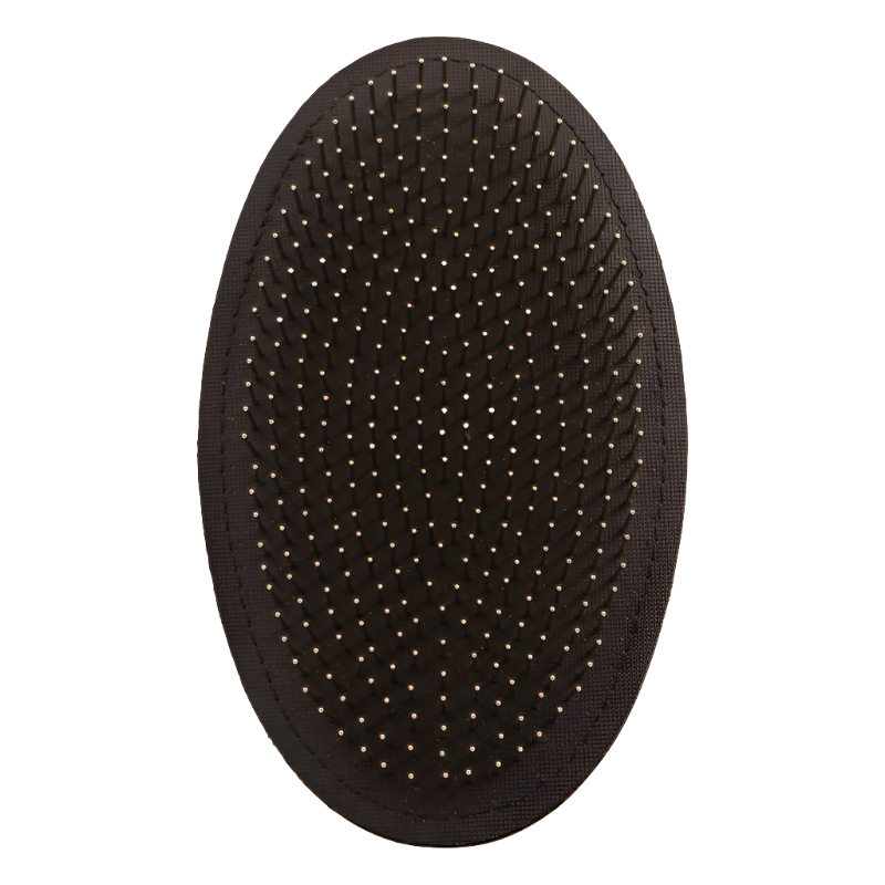 Chris Christensen Terrier Palm Pad 16mm is used for brushing, prepping the coat for stripping, smoothing down dogs coat. Comfortable for both the groomer and the dog Each high grade steel pin head is sandwiched between nylon rubber with the leather backing Flexible leather forms to your hand without the need for a strap Seventy-eight ground and polished metal tips will not scratch dogs skin or coat 16mm pin length to see all Brushes to see all Chris Christensen products.
