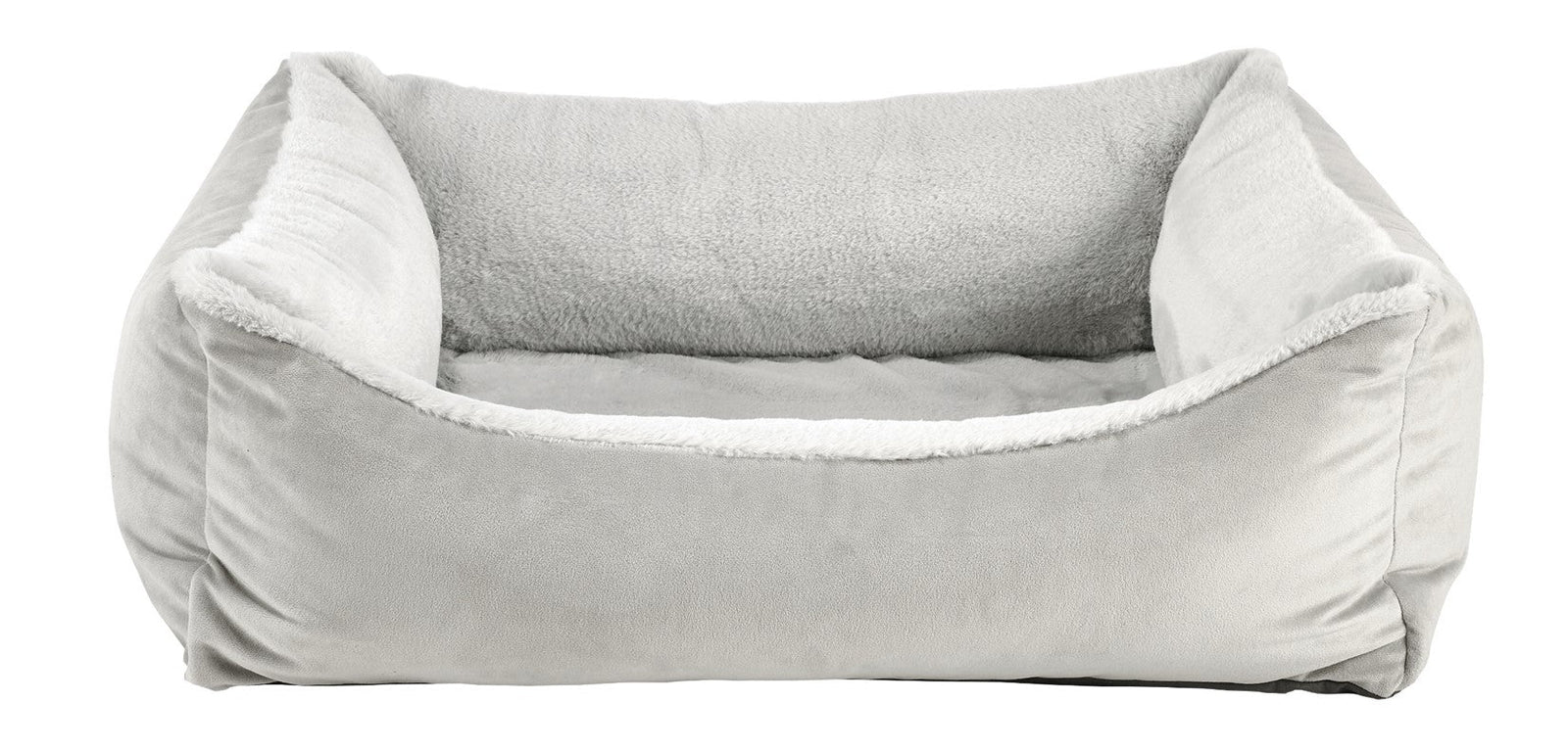 Easy entry scooped front design combined with cool gel memory foam support. The memory foam cushion insert is infused with Cool Gel Micro Beads which helps regulate body temperature. Elegant two-tone fabric combination and European style "pinched edge” trim. Generous sizing maximizes sleeping area.