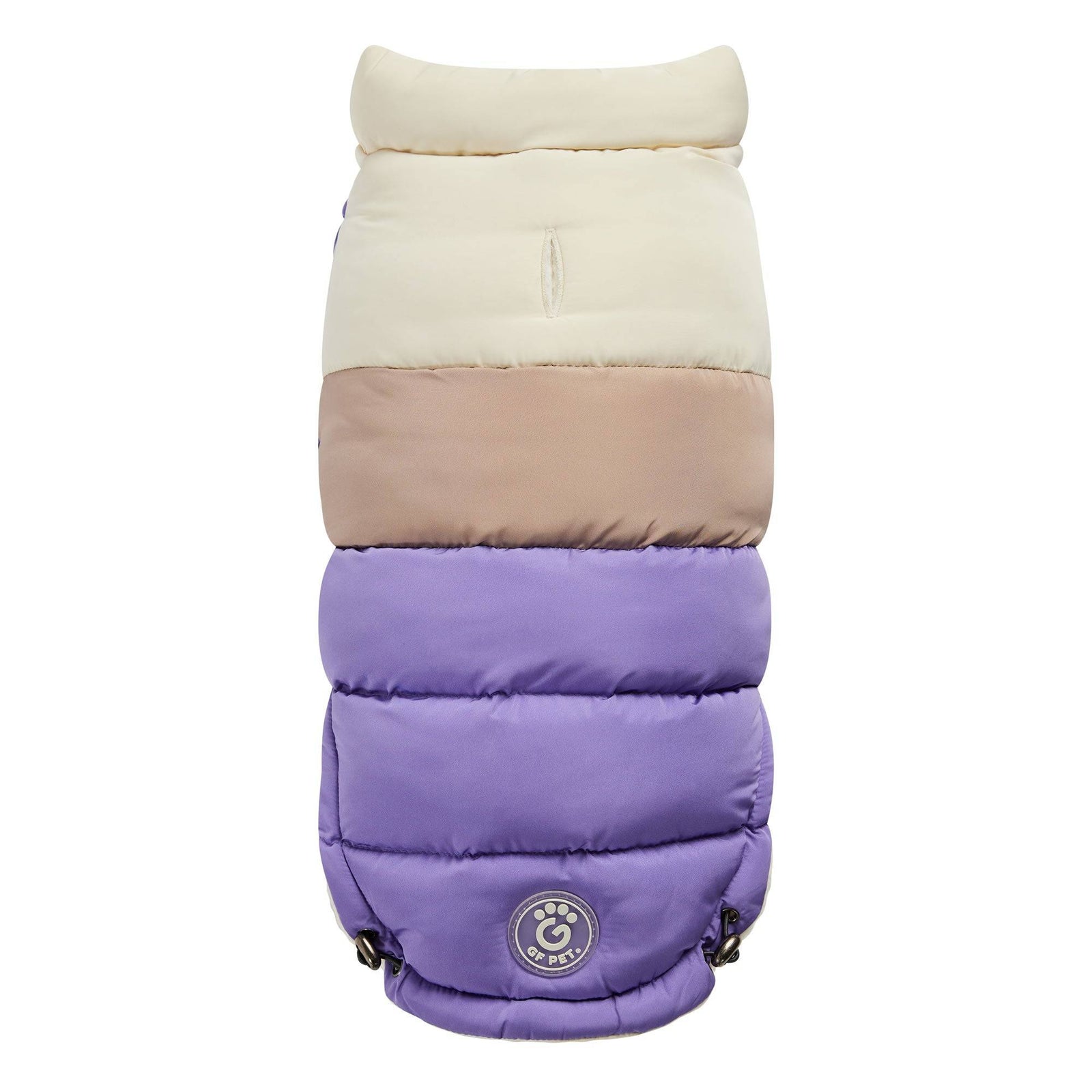 The GF PET Elasto-Fit Color Block Puffer is a great choice for active dogs who are looking for the coolest puffy fashion and warm coverage. Its' puffy, down-touch filling and trendy color blocks are a stunning statement of canine vogue! Both country-chic and city-sleek, this gorgeous puffer flaunts sleek and simple lines, GF PETĀ® signature contrast binding, and bold, unisex colors. The Color Block Puffer keeps it real with snuggly warm popcorn sherpa lining and double bungee cord adjusters to sculpt the back end perfectly to your dog. Water repellent and super adjustable, with patented Elasto-FitĀ® technology! Designed for the coolest dogs on the block, wanting flair and functionality!