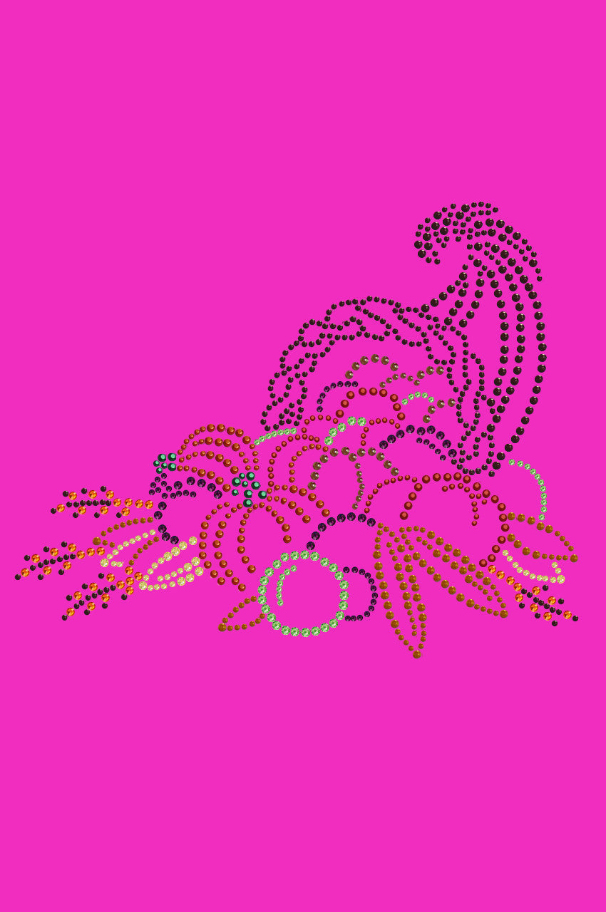 • 7.5" X 6" design withbrown, orange, gold, green, red, copper, topaz, jonquil, peridot, & amethystrhinestones & rhinestuds.