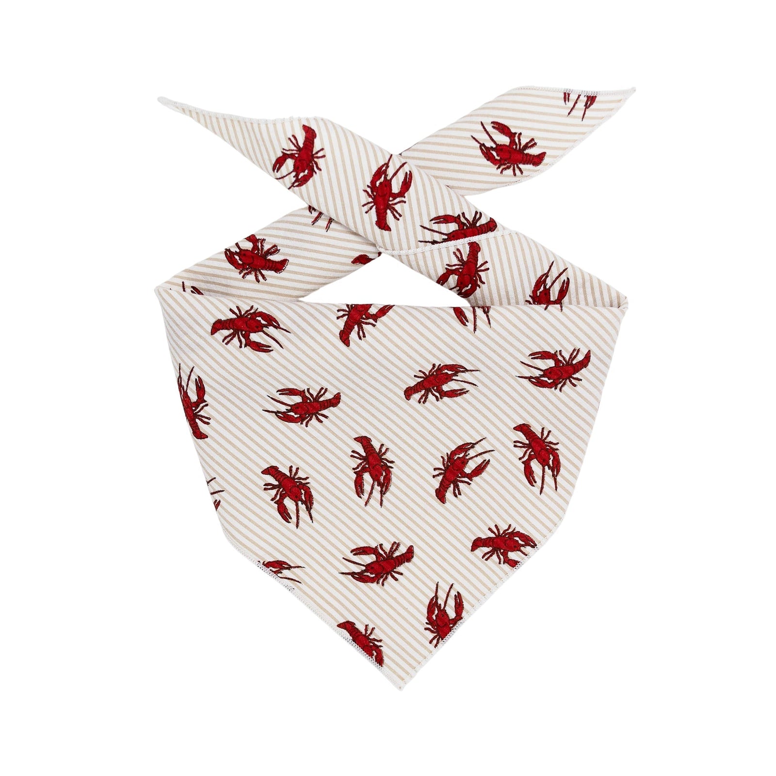 Red Crawfish | Lobsters on British Tan & White Seersucker fabric with White Rolled Hem.