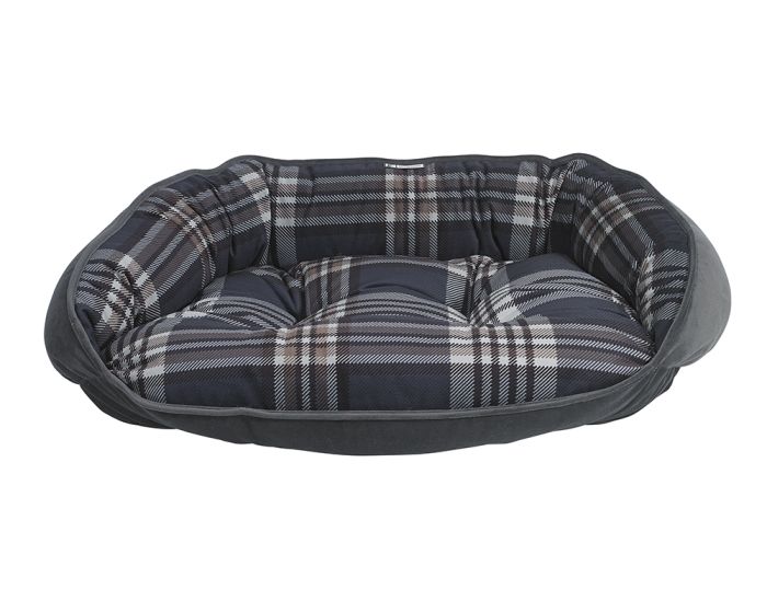 This unique design is ideal for older or arthritic dogs. The oval backrest bolster provides support and creates the feeling of security pets love. The overstuffed attached bottom cushion is tufted to ensure fibre does not clump or shift when washing.