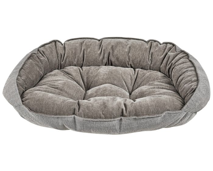 This unique design is ideal for older or arthritic dogs. The oval backrest bolster provides support and creates the feeling of security pets love. The overstuffed attached bottom cushion is tufted to ensure fibre does not clump or shift when washing.