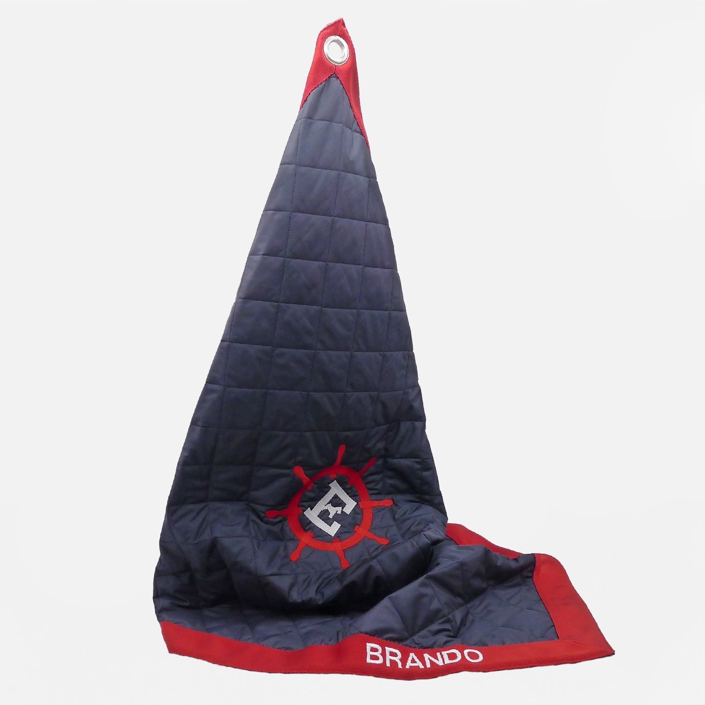 The brand new EMMA-RINE logo, with the rudder embroidered in red, decorates the center of this dog mat, framed by a nylon ribbon of the same color on which your puppy's name will be embroidered, if you wish and at no additional cost.