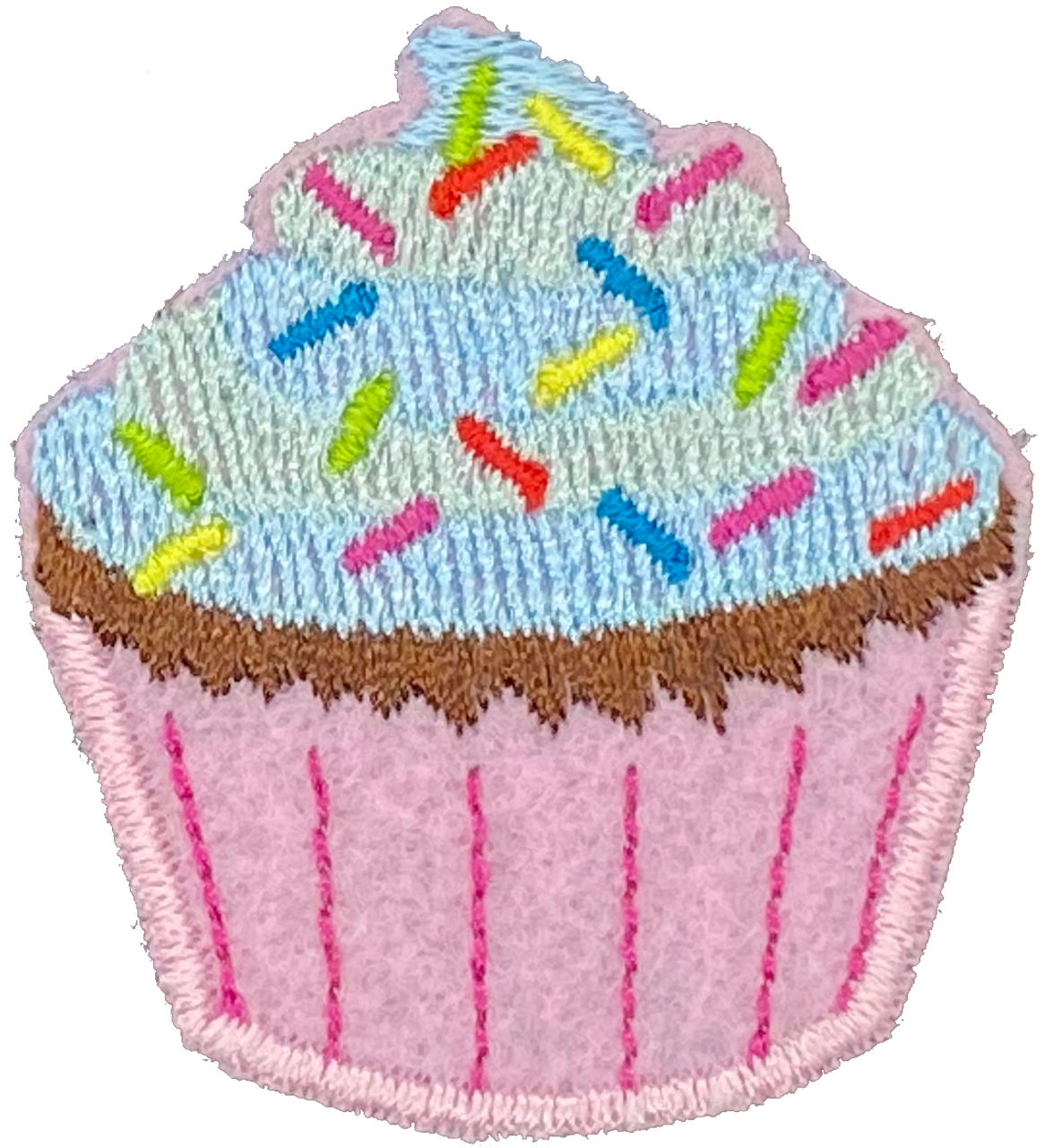 Cupcake 2 Small (Pink & Blue) Patchfor Denim Jackets, Vests, and Bandanas. 1.75" X 1.75". Please use our Interactive Designer to see what your patches will look like on your size of garment. Patches may also be purchased separately if you whish to add additional patches to items you already own.