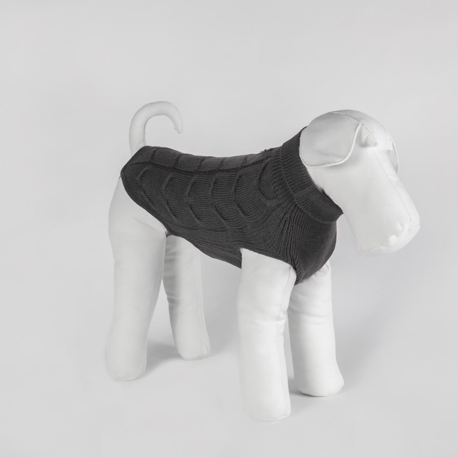 Dark gray 4-wire pure new Merino Superwash wool knitted dog coat with wave motif. A warm and light garment to protect your four-legged friends in the cold days. Merino sheep fleece is highly valued and produces an extremely fine and precious wool, with a longer lifespan if we compare it with a standard wool obtained from a common sheep. The handy and comfortable fit of this sweater for dogs makes it perfect for your dog's protection.