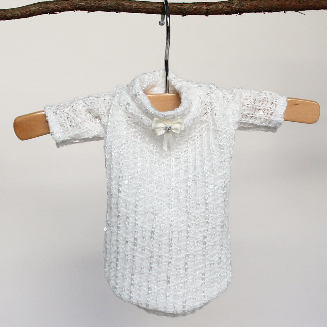 Hello Doggies Destiny Sweater is a handmade light knit sequence sweater adorned with a satin bow and Swarovski crystal.