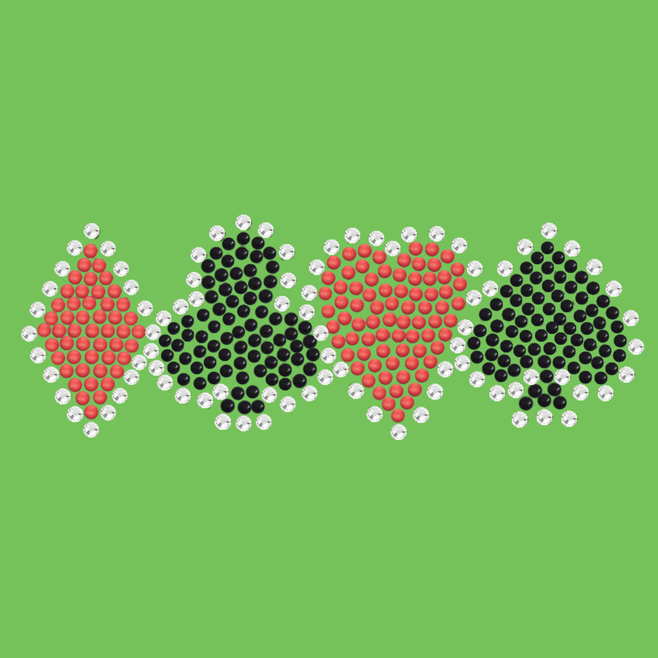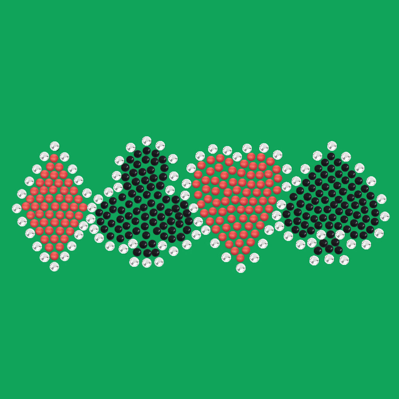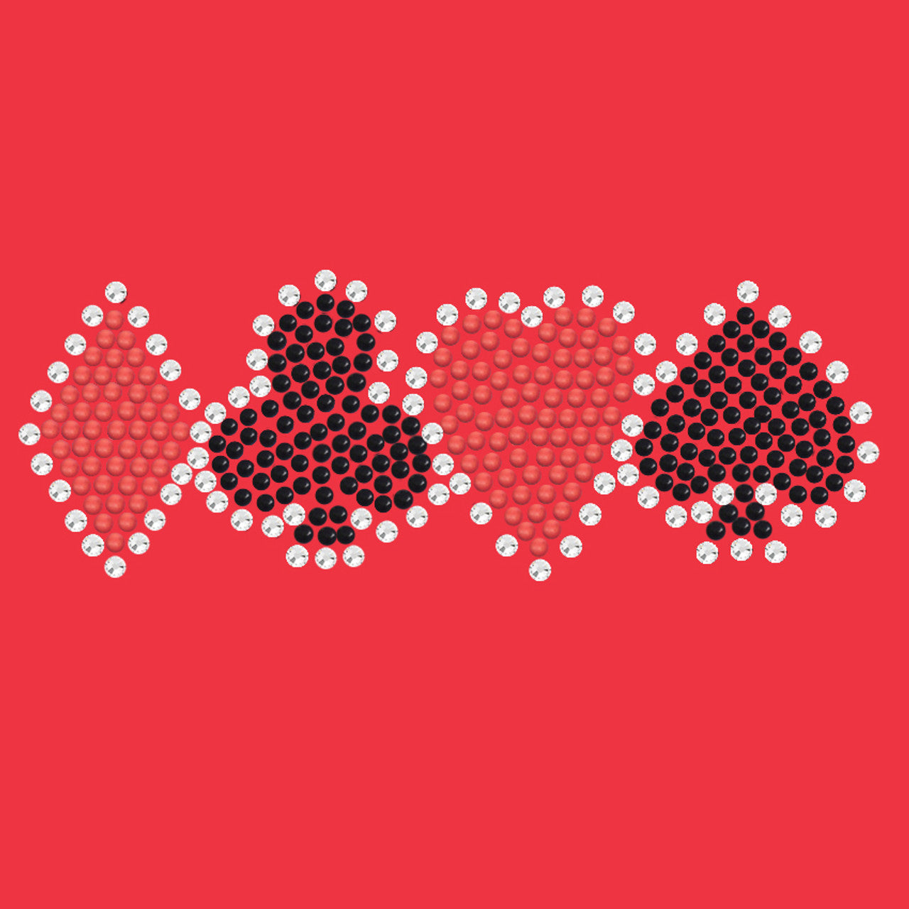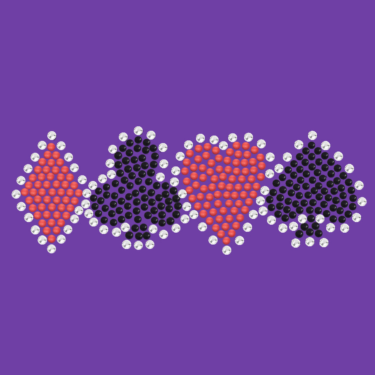 • 5.5" X 1.75" design with red, black, & clear rhinestones, nailheads, & rhinestuds.
