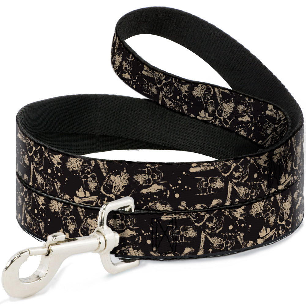 Dog Leash - Pirates Skulls Scattered/Splatter Black/Tan/Red