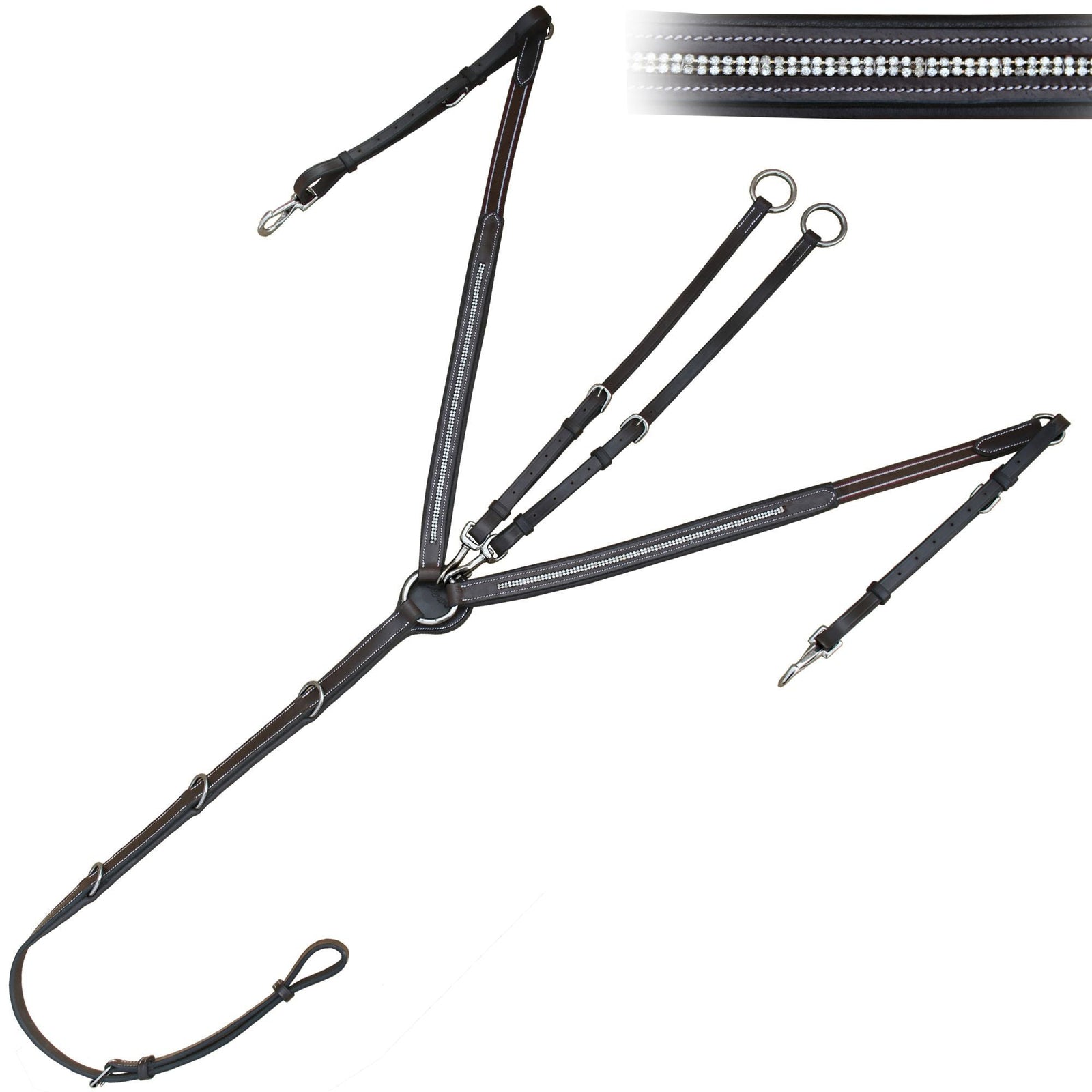 The running attachment on the breastplate is adjustable with a number of holes on it and on the breast strap. Snaps are provided on both ends to attach to the saddle.