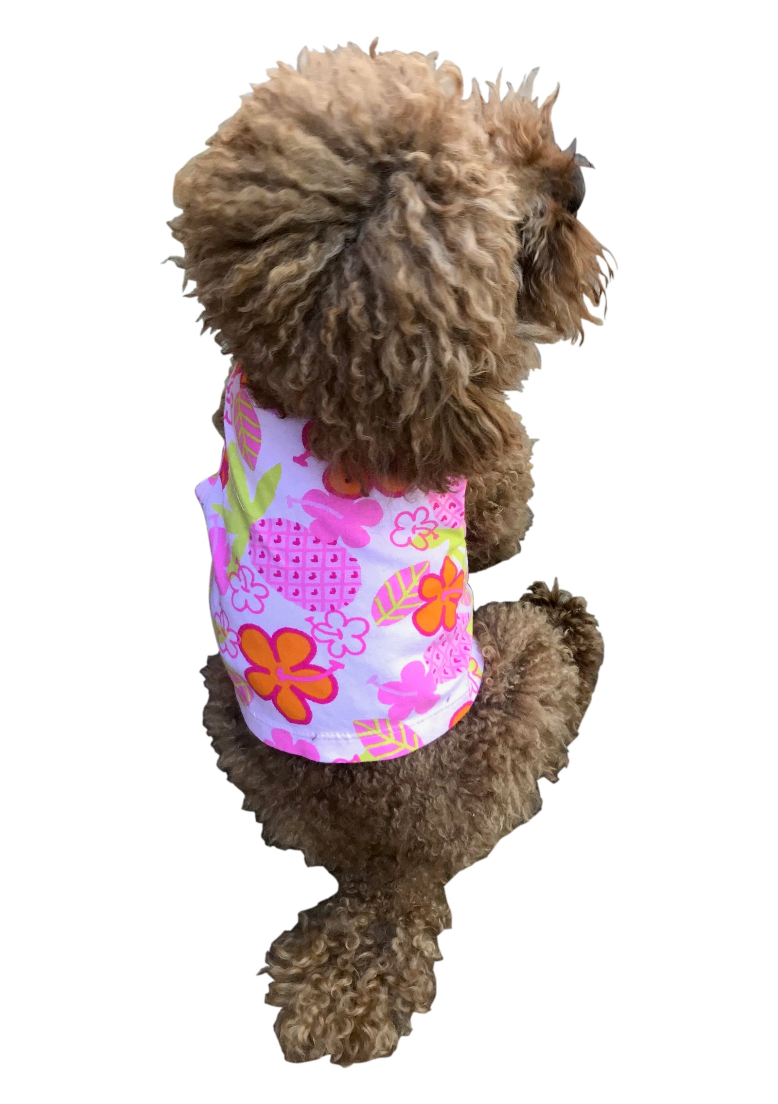 Head to your next tropical getaway with your pup in this beautiful and comfy Floral Aloha Tank. Made with soft cotton and a vibrant floral print, this cropped tank top is a perfect way for your dog to stay cool on your summer vacation!