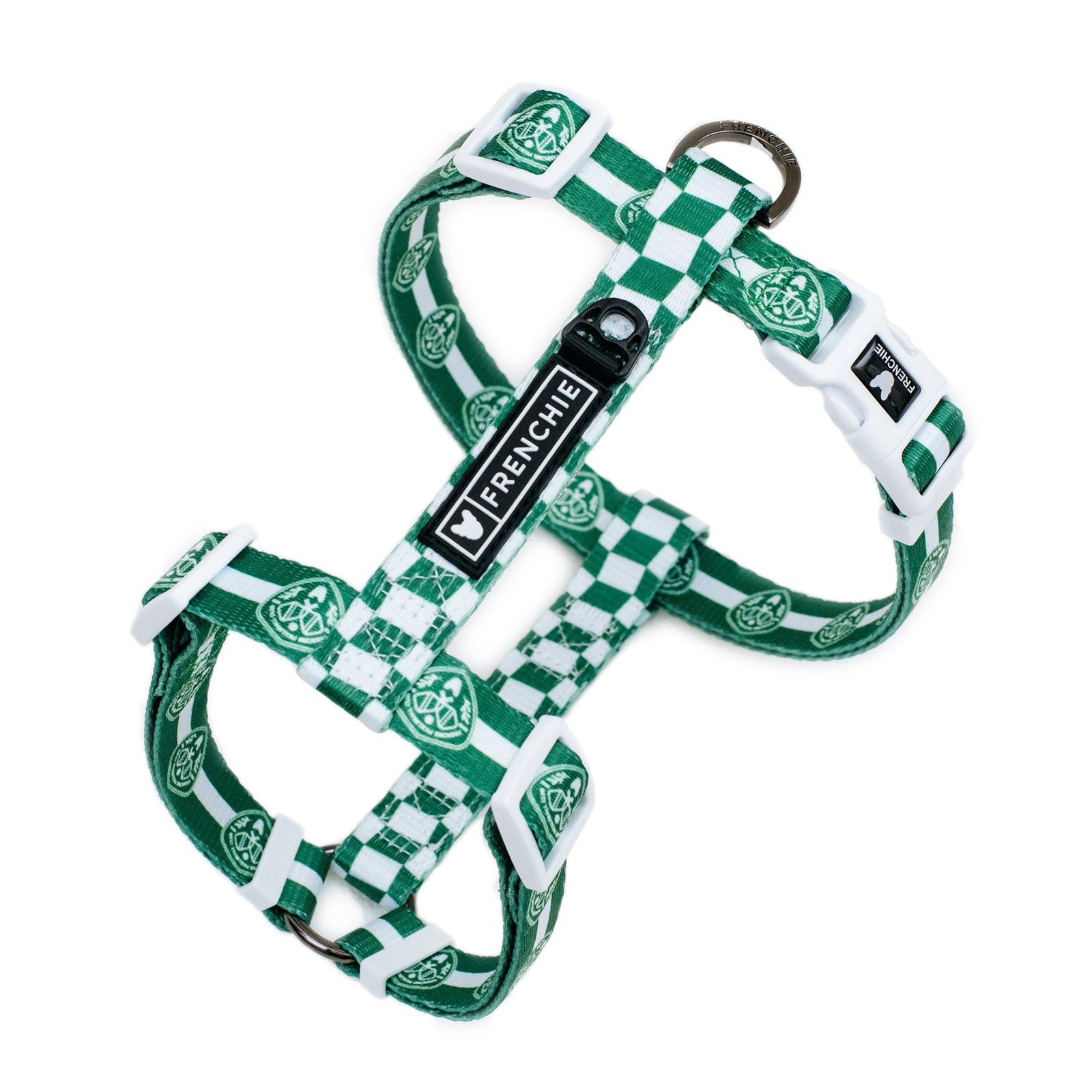 Frenchie Strap Harnesses feature vibrant dual printed polyester webbing strap, black accessory components and heavy duty branded buckle. They are one size fits most.