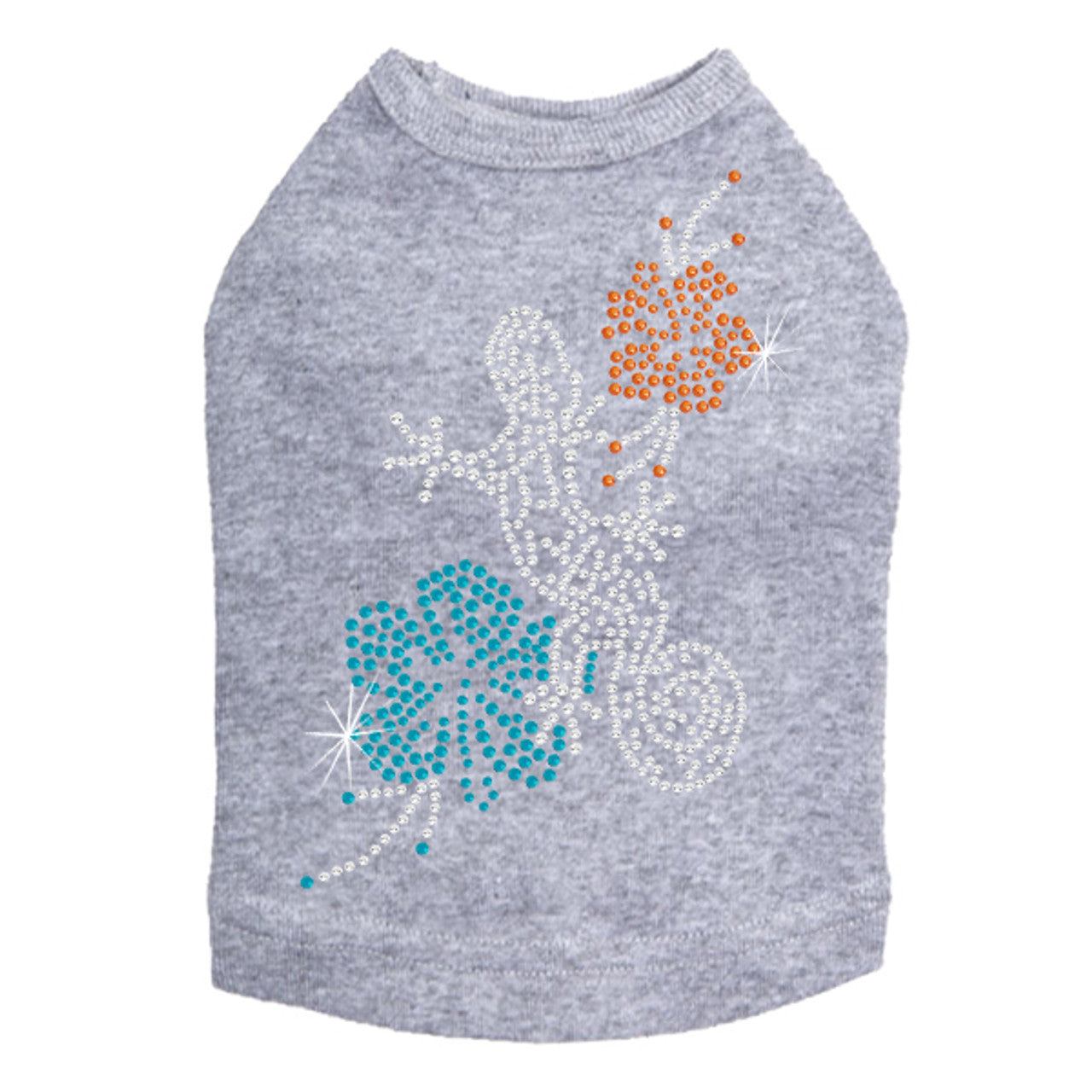 • Gecko and Hibiscusrhinestonedog tankfor large and small dogs.