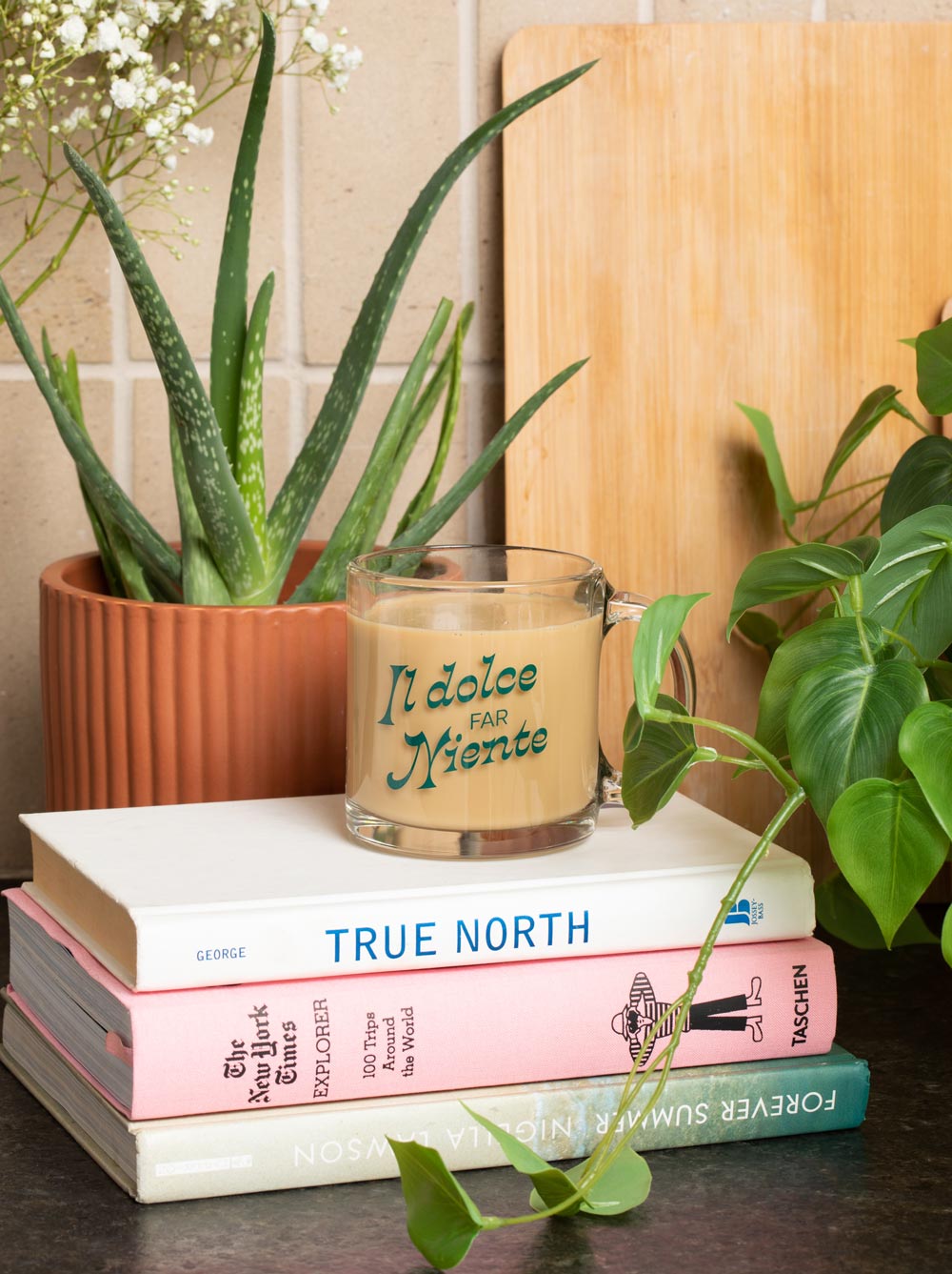The perfect morning is enjoying — the sweetness of doing nothing — with your pup. Practical and aesthetic, this retro glass mug will make your morning routine a little sweeter.