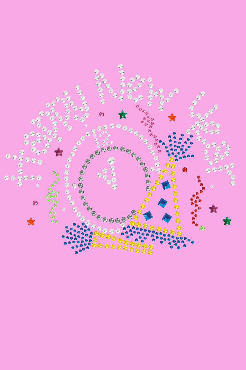 • 6" X 5" design with pink, green, gold, gray & clear rhinestones & nailheads.