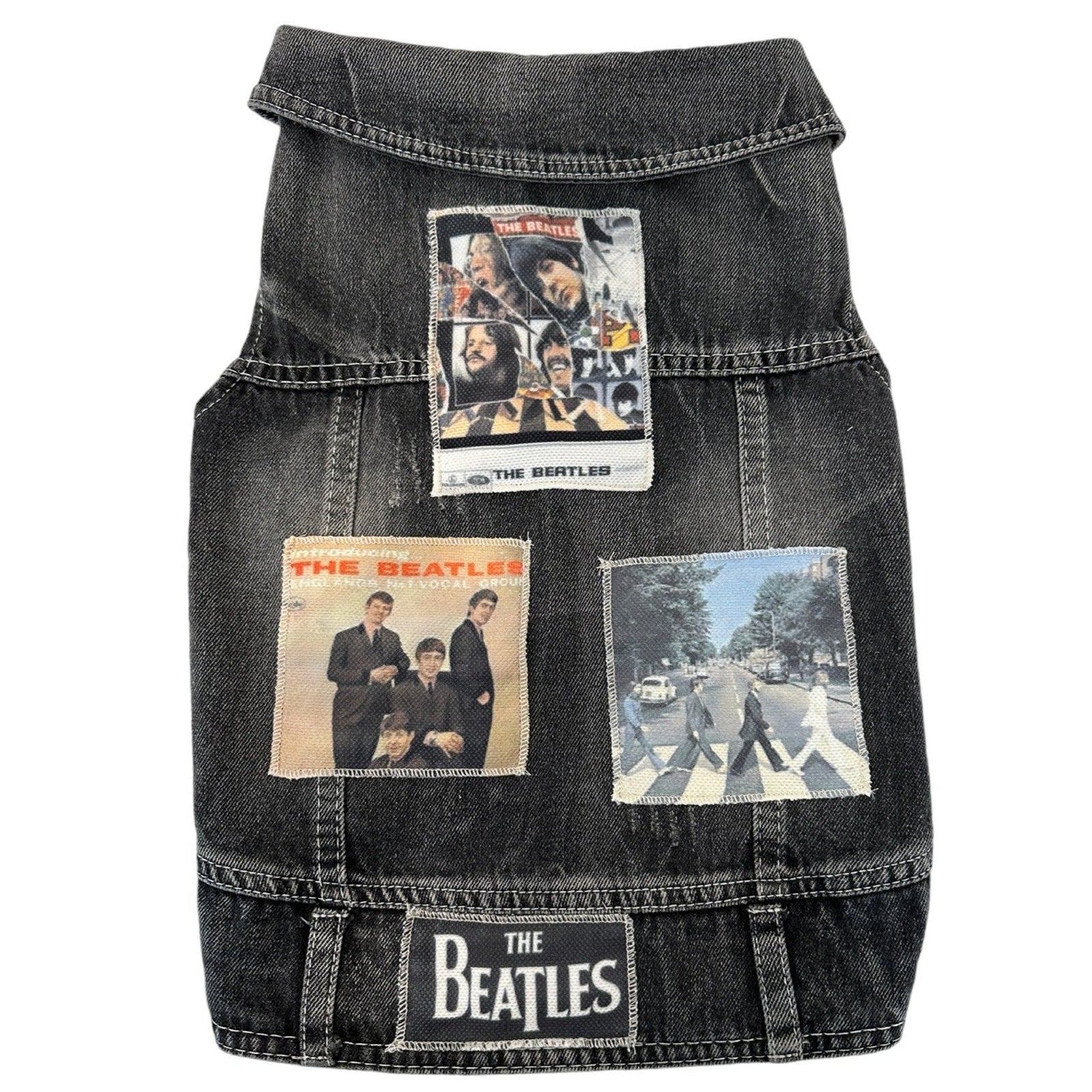 Get your hands on a one-of-a-kind vintage masterpiece with our latest Beatles Artwork Vest. Each piece features an inspired assortment of Iconic Beatles Album and CD artwork. Patches are laid out by hand and vary from vest to vest. With this, you'll have a truly unique piece that sets you apart from the crowd. You can also add a D-ring for stylish leash walking! Don't forget to check out our size chart to make sure you get the perfect fit.