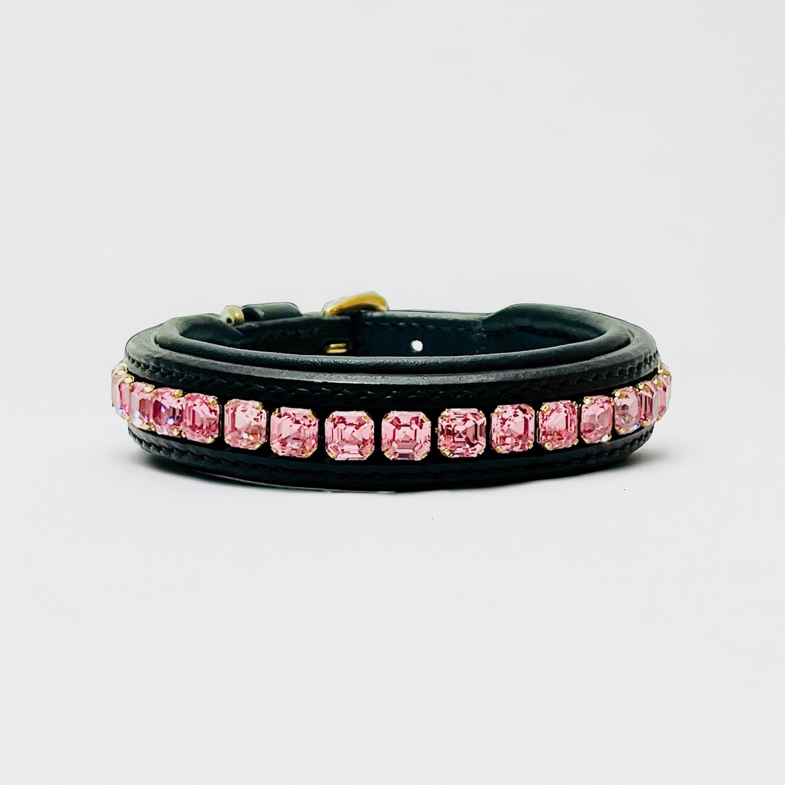 Indulge your furry friend with the handmade Imperial Dog Collar. Crafted with high-quality leather, it's soft yet durable. Adorned with a stunning 10mm Light Rose Imperial Stone and luxurious crystals. Custom-made to fit your dog's measurement for ultimate comfort. Enhance your pet's style and comfort.