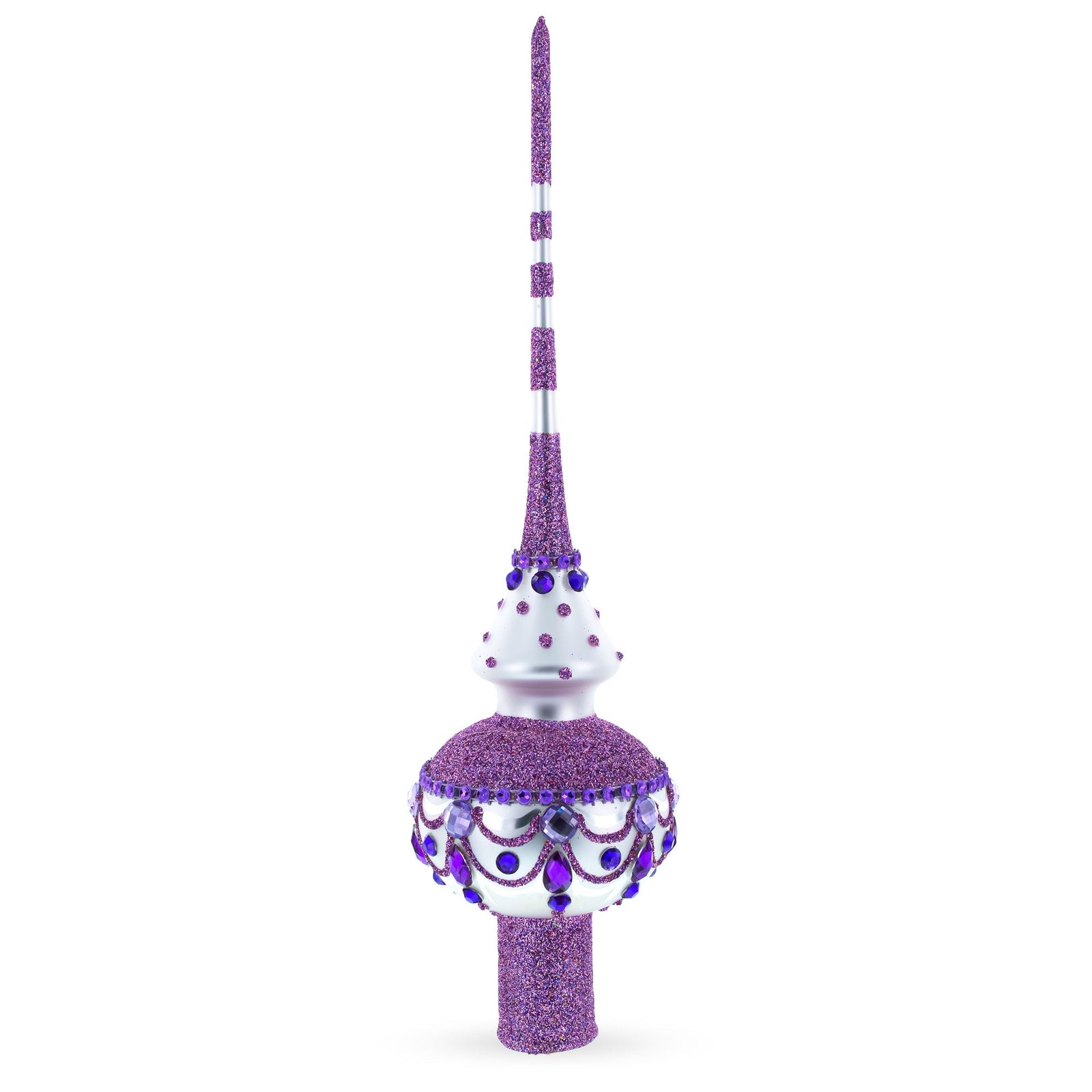 Jeweled Purple Chandelier on White Glass Christmas Tree Topper 11 Inches